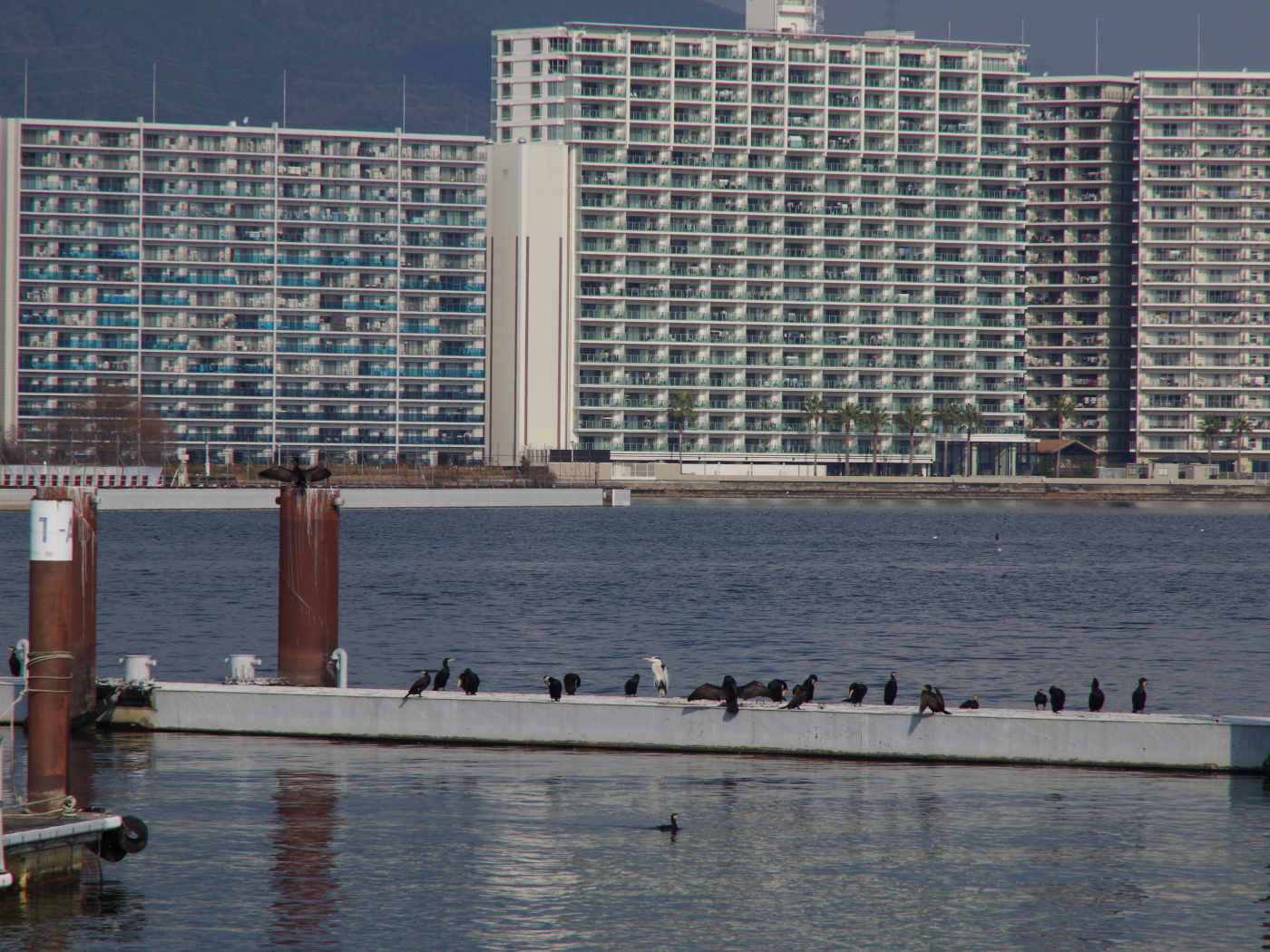 12月は師走の言葉通り過ぎ、あと一日で年が明けると、あまりにも早く時が流れるのに驚くばかりだ。老人時間は早いとは聞いているがこんなにも早いと感じたのは初めてだ。今日の湖岸散歩でもユリカモメに餌を与える親子を見かけ桟橋の手すりの方を見るとユリカモメが競って餌を狙って飛翔していた。よく見ると鳶やハトまでが仲間に加わって飛び交っていた。西側の浮桟橋ではカワウが休んでいる中にアオサギの姿も見られる長閑な風景が広がっていた。そして恒例の京都グレートランのフィニッシュするゲートには100キロメートル以上の距離を走ったランナーがゴールしている風景を見ながら、200キロの距離を限られた時間に人力で移動する凄さに感心しながら写真を撮った。