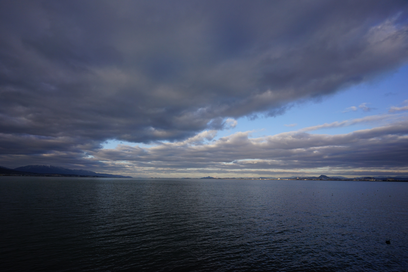 琵琶湖の水位は低い状態ながら安定しているのは湖北や湖西では雪が降っているからだ。大津は雪も降らずに乾燥状態で湖岸に佇んで彼方の雪雲を見ていると羨ましいぐらいだ。今日の水位はマイナス56センチで少しずつ上昇しているようだ。