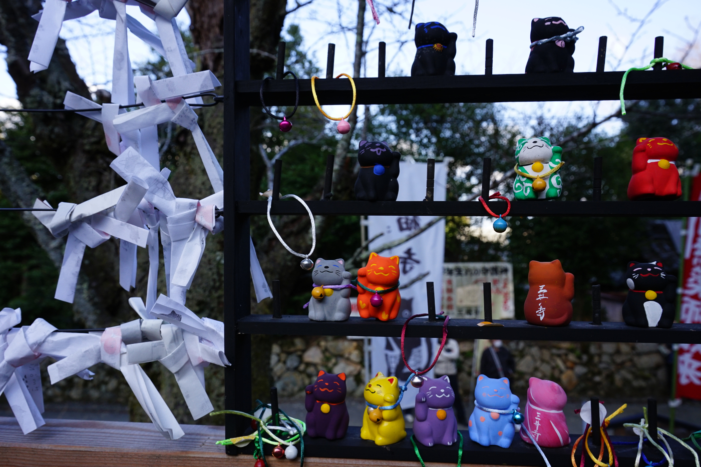 今日2月22日は猫の日だそうだ。僕の友人にも猫好きが多いが僕は犬派だから猫は好きとかきらいとかの範疇外だ。何時も散歩する三井寺の境内には猫寺が出来たと言っても薬師如来を祀る水観寺が猫寺としてお寺の名所?として登場した訳だ。猫寺と言っても何時も猫がいるわけではない、猫おみくじとして売られる小さな可愛い陶製猫がおみくじでもらえるから人気が出てきたのだ。今日はお堂の前の御籤売り場では並んでいる人も多く見られた。世の中は猫ブームとあって多くの猫ファンが集まって来て三井寺よりも猫寺が有名になってしまっては困るのではとデジカメのシャッターを押した。