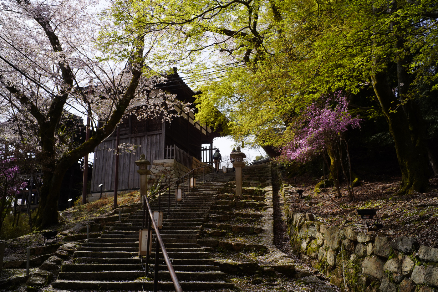 桜の花が散り始め風が強く吹くと花吹雪がお花見のシーズンの終わりを知らせているようだ。疏水の流れにも花筏が見られた。三井寺では新緑が次は私が主役と鮮やかな緑で表現していた。琵琶湖の水位も順調に回復してきた。魚たちの産卵に必要な水位までは後少しだ。間もなく三井寺は鬼貫の有名な俳句花散りて また静かなり 園城寺 に戻り静かな佇まいの三井寺へと・・・・