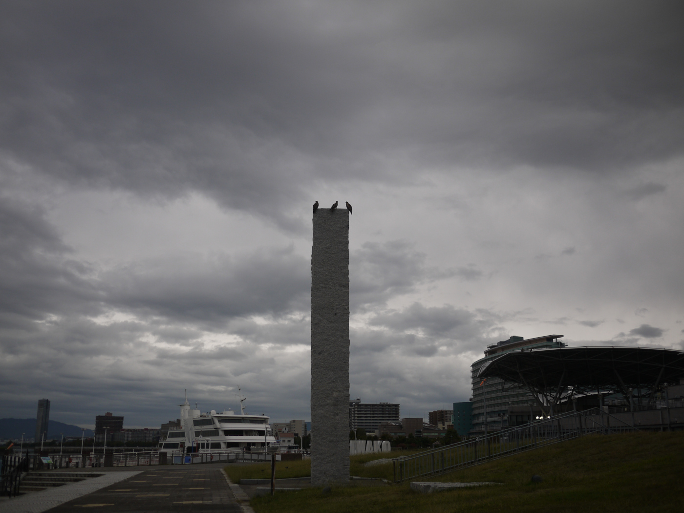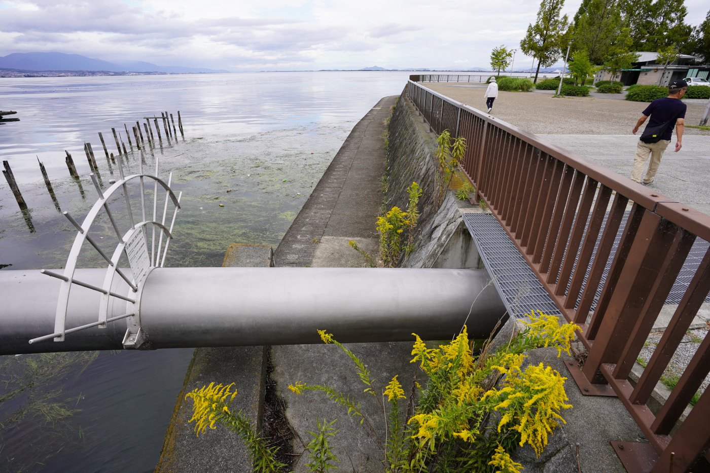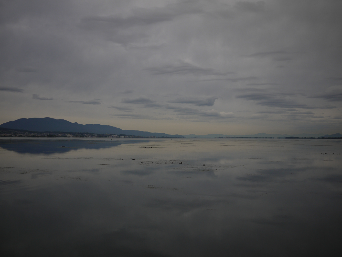 秋の観光シーズンに入っても大津の町は静かだ、賑わうのは夏の花火大会と10月の大津祭りの日だけは昔の賑わいを思い出させてくれるが日常は静かだ。今日も浜大津の市民お祭り広場ではイベントが行われていた。お天気も曇り空で湖岸で釣り人の姿もなく静かな佇まいだ。でも湖岸に佇んで雄大な景色を楽しむには静寂が良いと思った。