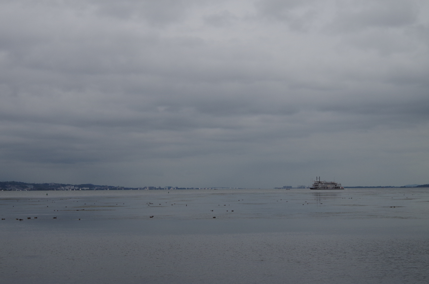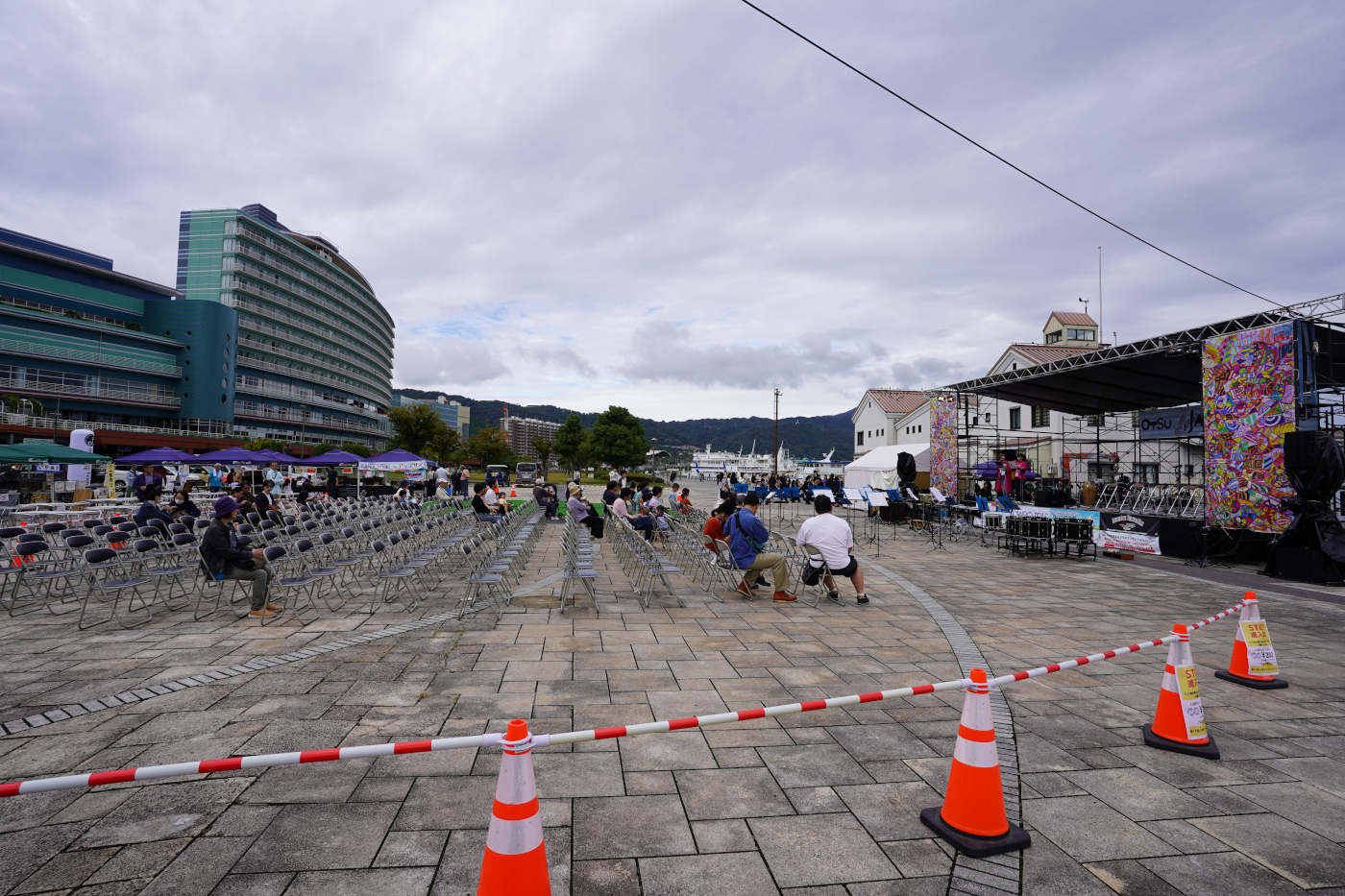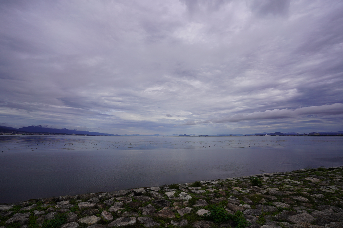秋の観光シーズンに入っても大津の町は静かだ、賑わうのは夏の花火大会と10月の大津祭りの日だけは昔の賑わいを思い出させてくれるが日常は静かだ。今日も浜大津の市民お祭り広場ではイベントが行われていた。お天気も曇り空で湖岸で釣り人の姿もなく静かな佇まいだ。でも湖岸に佇んで雄大な景色を楽しむには静寂が良いと思った。