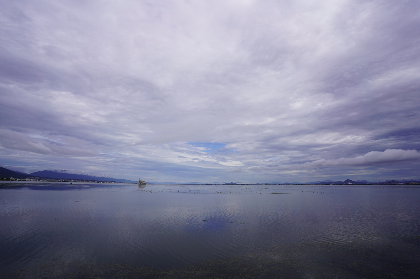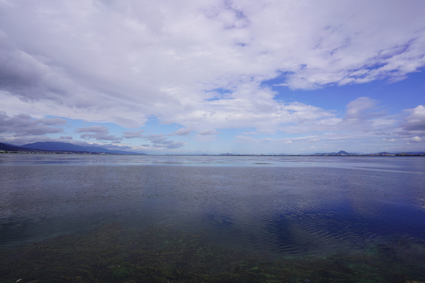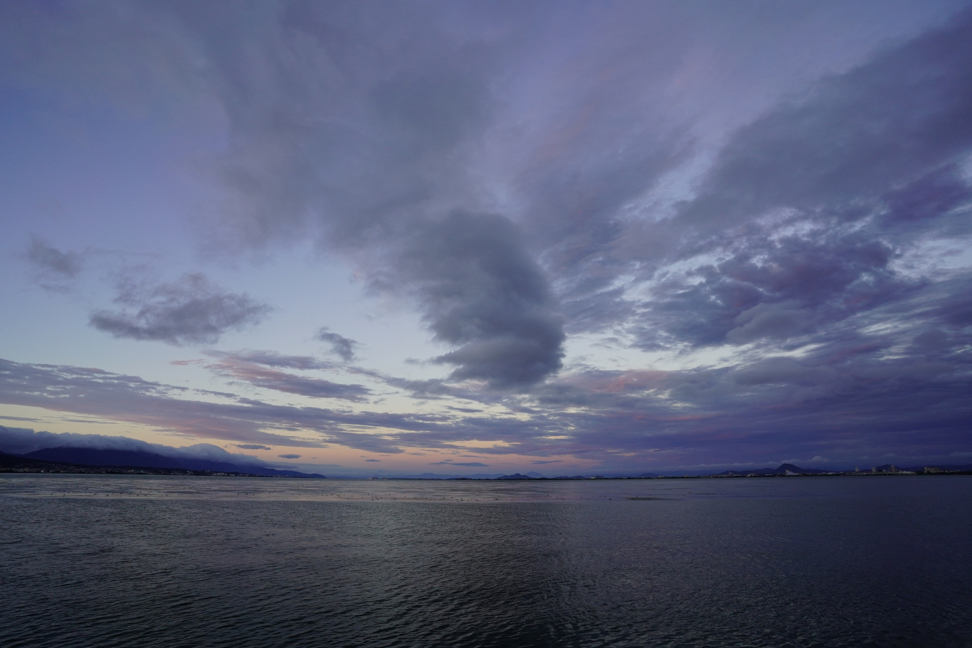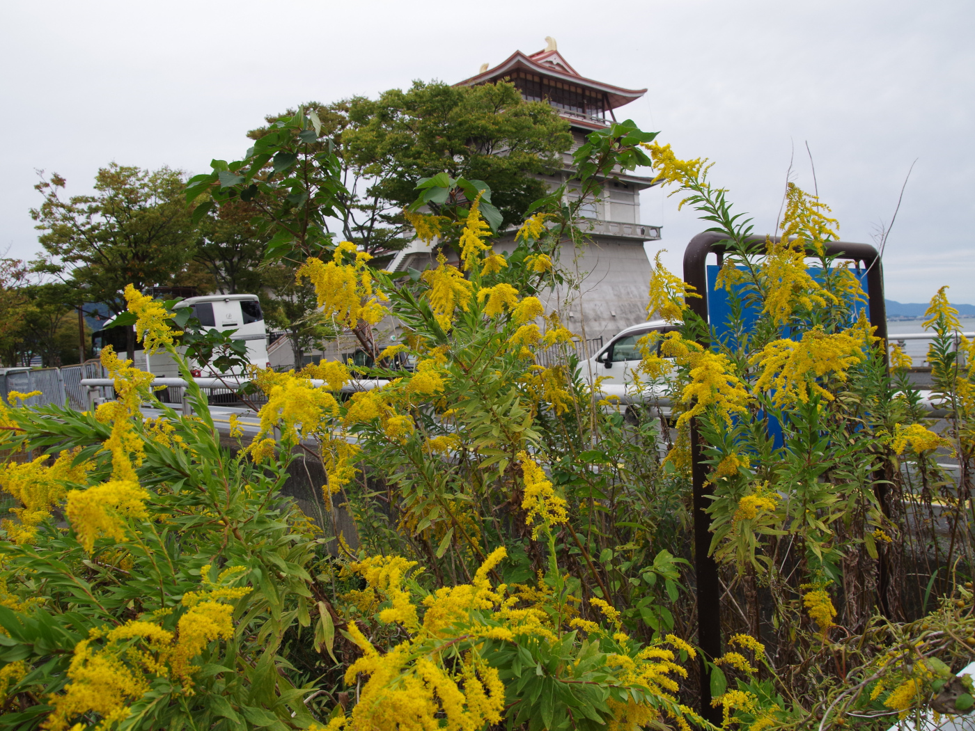 今日の午後は青空も見え秋らしい日となった。暑かった夏は何時になったら終わるのかと心配した頃が懐かしく感じるのは秋が来て涼しくなり体に余裕が出来たからと湖岸から琵琶湖を眺めた。打出浜の湖岸近くの湖面はスーパーかいつぶり号の除草作業で綺麗になったが岸辺近くには笹葉藻?切れ藻?はまだ残っていた。セイタカアワダチソウは以前ほど元気はないが、まだ存在感を見せていた。夕方、空を見上げると夕焼け雲が見え急いで湖岸へ向かった。自転車で急いで湖岸まで走ったが赤く染まる夕焼け雲は撮れなかった。でも爽やかな琵琶湖夕景が楽しめた。