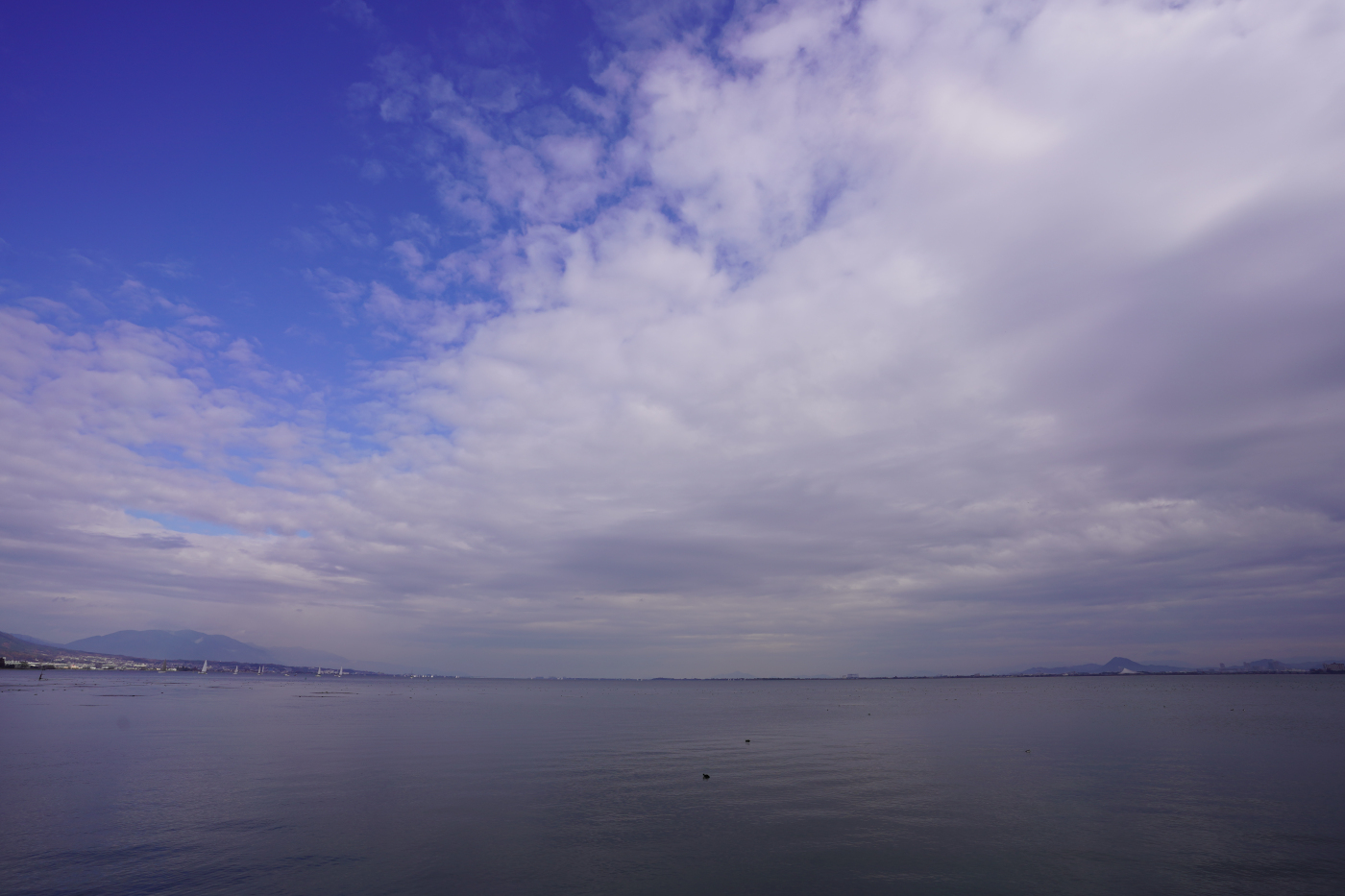 今日も湖岸に佇んで上空の雲を眺めていると気流の流れの速さに驚く、広い空間の中で短時間に変化する雲の様子の見事さには言葉はいらないと何時も思う・・・・
