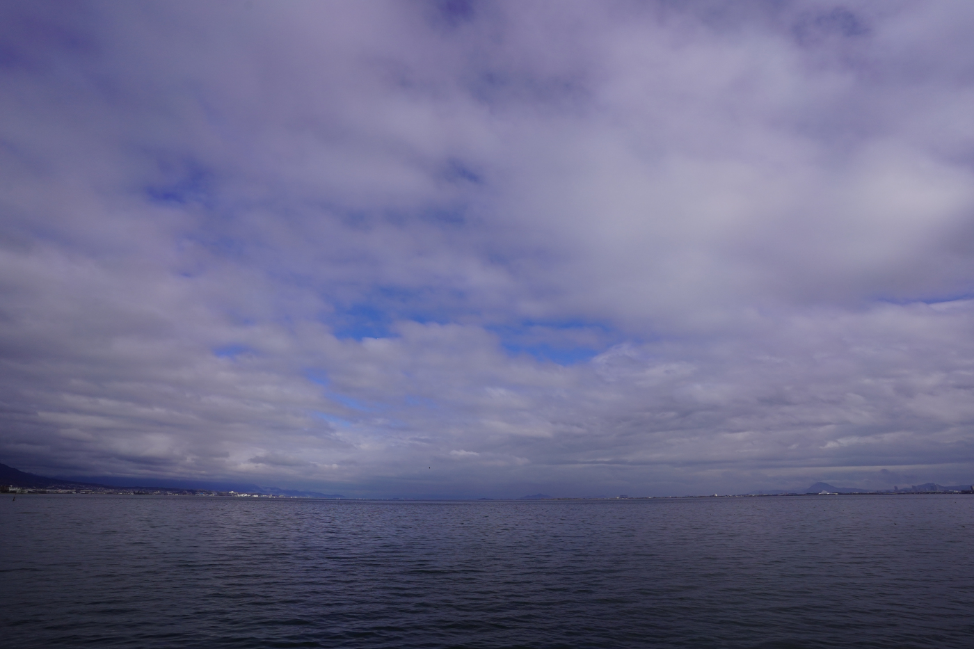 今日は暖かく春の陽気を思わせる穏やかな日となった。湖岸ポタリングに出かけると打出浜湖岸で蜃気楼を観測する富田さんの姿を見つけ自転車を止めると上位蜃気楼が出てますよと教えてくれた。富田さんによると此の時期に上位蜃気楼を見るのは初めてだと言われ状況を説明してもらった。残念ながら僕のカメラはワイドレンズで彼方の蜃気楼を撮ることは出来なかった。でも上空の雲の変化が楽しめた。短時間で変化する雲の様子には驚くしかない大空間を数十分で描き変える自然の術に感嘆しながらシャッターを押した。