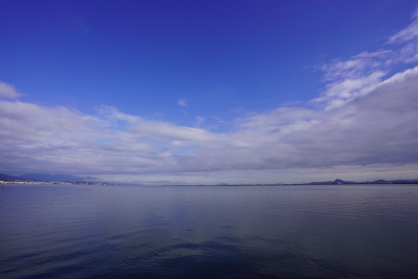 今日は西高東低の冬型で季節風が強く湖岸ポタリングも自転車が走り辛く打出浜で引き返した。湖上には三段重ねのレンズ雲が見え上空は強風だと想像がつく辺りの雲も迫力がある積雲から積乱雲に発達する雲も見られた。琵琶湖の水位もマイナス63センチと少し回復した。そして大雪が何回か降れば春の雪解けでプラス水位に戻るのではと彼方の雪雲に期待した。