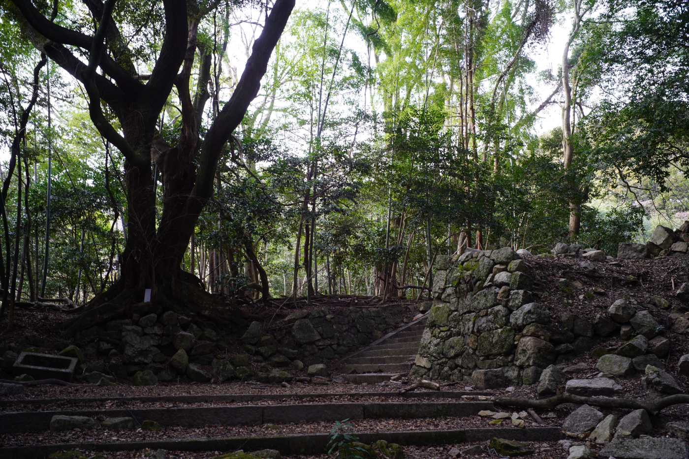 此処数年、暇な時間に読んだ森林関係の本は「森の生活」から始まり「森の旅 森の人」まで数冊を読み終えて本物の森に会いたくなって今日は三井寺の森?を歩いた。僕は三井寺の森と言えば新羅の森だ。その森は新羅社があり新羅明神が祀られていて今も神秘的な場所だ。その森は椎木が多くあり子供の時は祖母が其の森で拾ってくる椎の実は大きく、美味しかった事は覚えている、でも現在の新羅の森は明るくなり椎木は朽ちたり伐採されたりして少なくなった。でも大きなクスノキも顕在で数本残っている椎木が昔の森の名残を感じさせてくれた。少し山へ入ると新羅三郎義満の墳墓があるが周辺は植林された杉が多く幽玄な森でないが800年前の歴史の影を感じる場所だ。森の静寂を一人で感じると何故か遠くへ来たように思った。