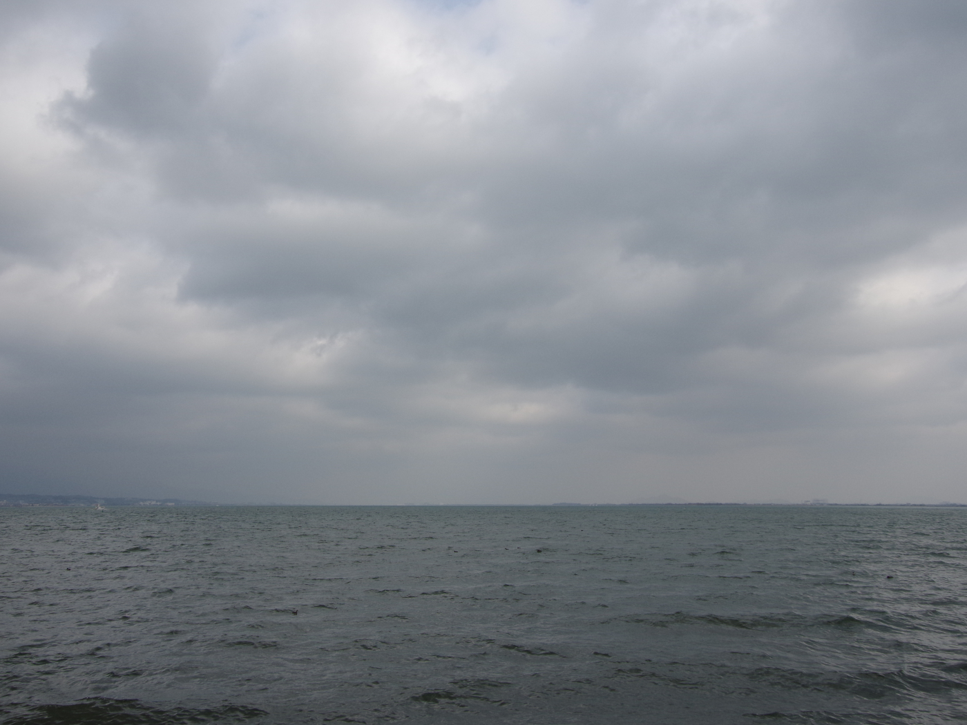 青空が広がる中で湖岸に佇んで雄大な琵琶湖を眺めた。マイナス水位が気になる春の雪解けでプラス水位になるのだろうか・・・