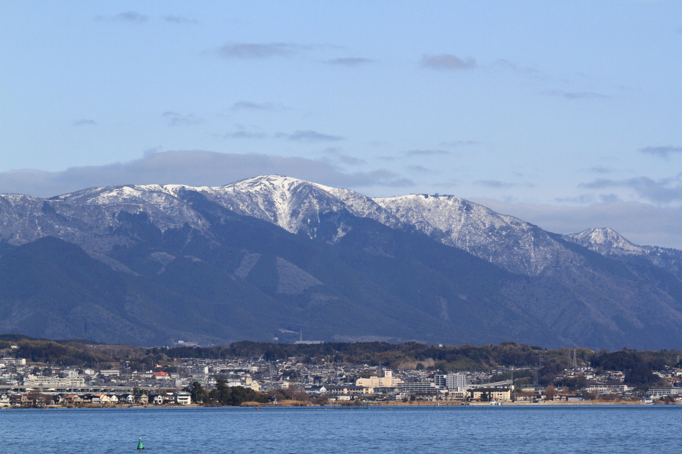 今日は三井寺の展望台から視程もよく湖北の山々が見えるが白山は少し厳しかった。湖岸へは望遠レンズ付けて向かった。水鳥を撮ろうと思ったからだ。お目当てのミコアイサの姿は無く残念だ、でもハシビロガモが岸辺近くで撮れた。もう少しアップで撮ろうと近づくと飛び去られた。でも納得の写真が撮れた。比良さんも近年は積雪が少なく蓬莱山を眺めると斑にも見え春が近いと感じた。