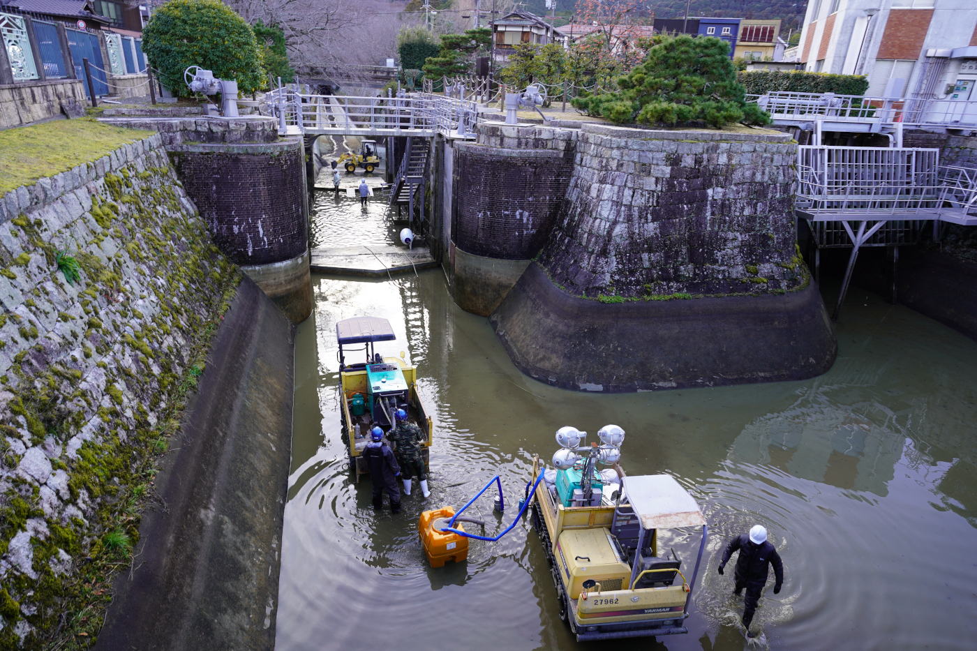 体調イマイチでは湖岸ポタリングも近場の周回では同じ様な写真が続く・・・琵琶湖の彼方には雪雲があり虹を期待しながら打出浜まで走るも虹は出なかった。琵琶湖疏水の清掃作業は本格的となった。疏水の側面や底には泥が付着しているのか水圧をかけたポンプで洗い流す作業が冷たい中で行われていた。
