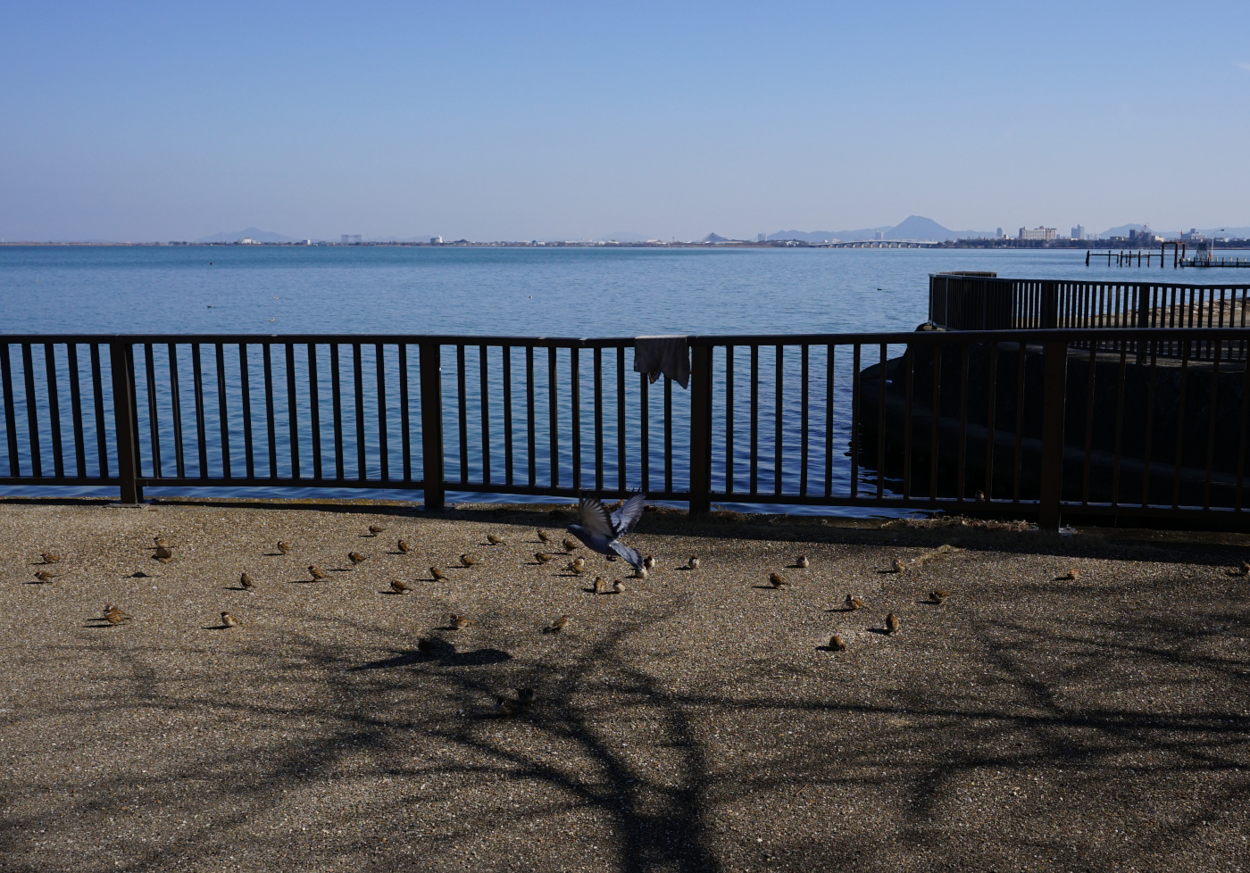 数十年前なら町中で雀が見られていた?のだが最近は我が家の小さな庭や三井寺の境内そして町中で見ることが無くなった。江戸時代の俳人小林一茶の雀の句は誰もが知っている、雀の子そこのけそこのけお馬が通る、は僕も知っている句だ。そんなに人と身近に暮らしていた雀が日常見られなくなったのは寂しいことだ。気候変動が進むと之から先は今まで普通に見ていた生き物が見られなくなるのではと湖畔で人が与える餌に集まってきた雀を眺めた。