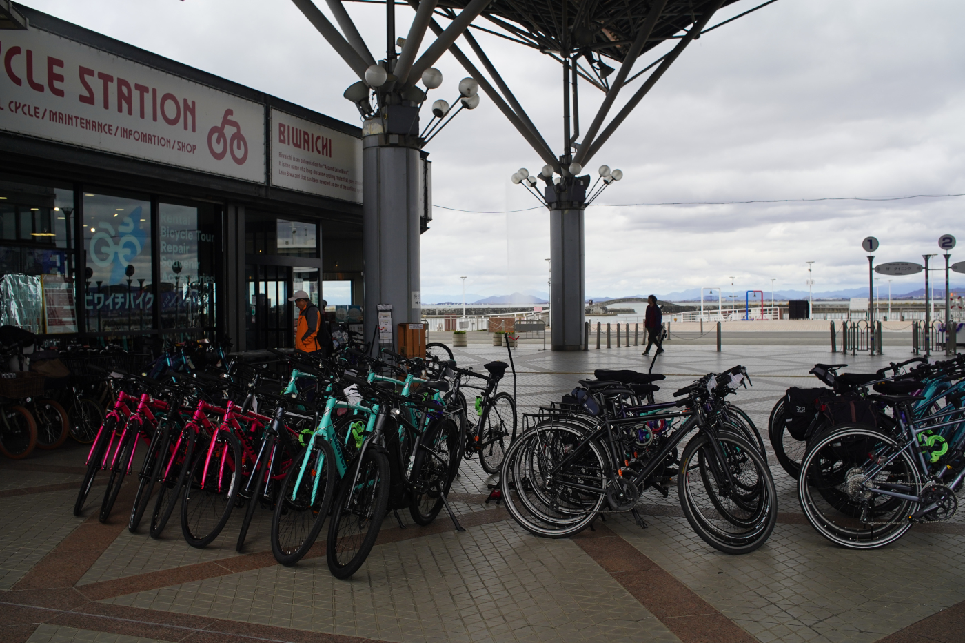 サイクリングと言えば琵琶湖一周が一番と?でも約200キロメートルを一日で回るのは大変だ。僕も30代の時に自転車で琵琶湖一周を12時間ほどかかって浜大津にたどり着いた。道路事情は悪く今のように湖周道路はなく国道や県道を走っての一周では湖北の湖岸など走るところも少なく唯一走ったのは海津大崎から今津までの湖岸ぐらいだ。知人と二人で競争ではないが意地の張り合いがなければ走りきれなかったのではと思い返した。高校生の時は彦根の従兄弟と彦根から海津大崎を往復したのも良い思い出だ。其の頃は砂利道が多くハンドルを握る手にも振動が伝わり強く握るために手にも豆が出来、そしてお尻も痛く夜になって彦根に辿り着いた事も琵琶湖サイクリングの思い出だ。油断して浜大津辺りで自転車で転倒しているようでは琵琶湖一周など出来ないではと湖岸を走る自転車を眺める爺だ。