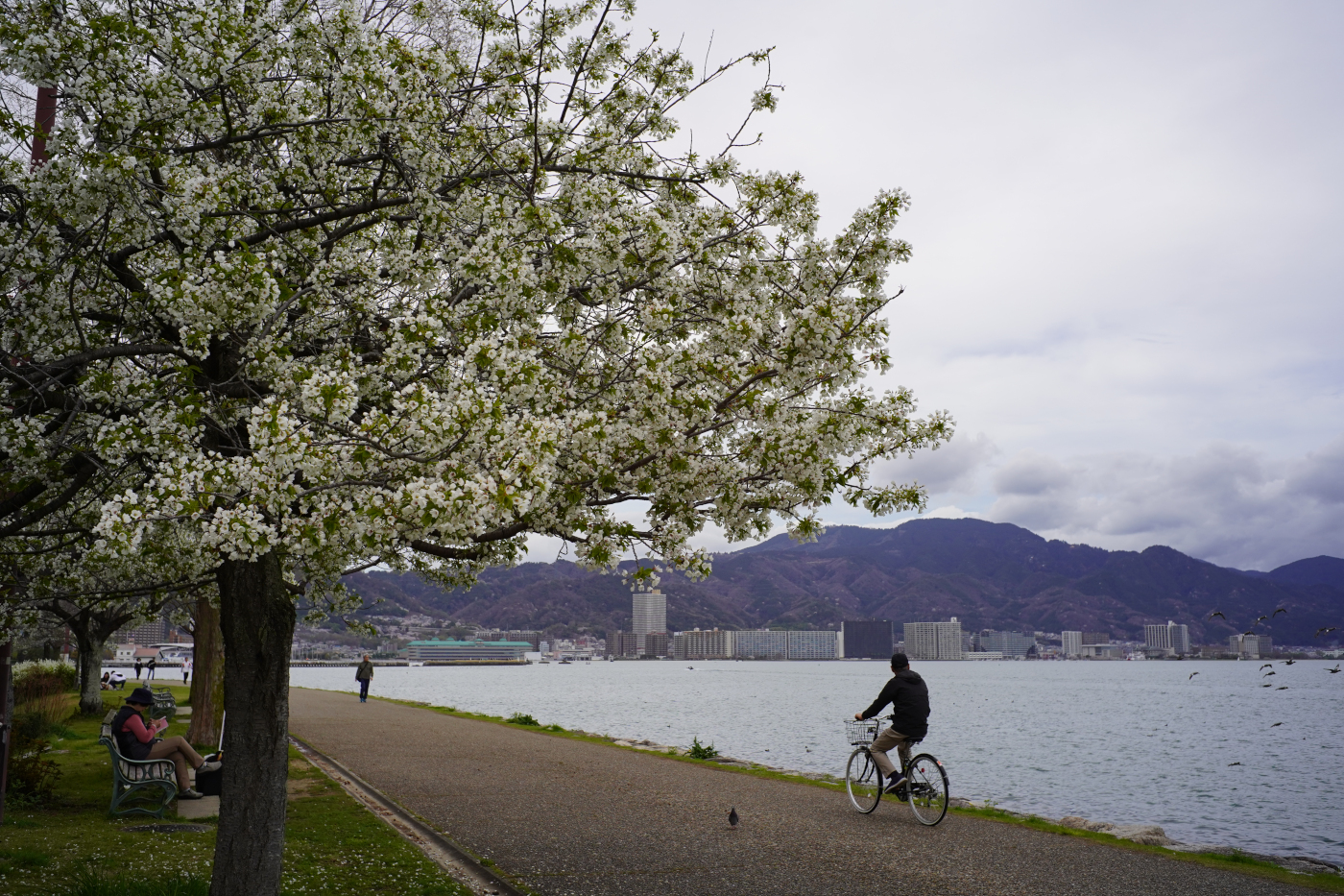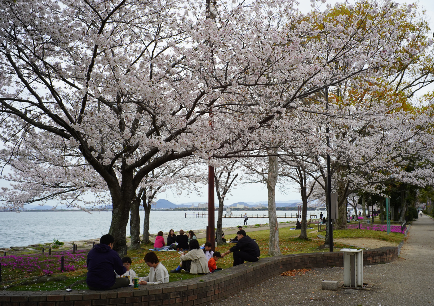 天気予報では雨の予報が変わって晴れの休日になって近くの名所は朝から大賑わいとなった。今日は三井寺の春の茶会で友人の清水さんと参加した。残念ながら光浄院の山桜は散っていたが池に浮かぶ花びらを見ながら煎茶を楽しんだ。午後は湖岸ポタリングで膳所公園へ出かけた。公園は膳所桜まつりで賑わっていた。以前在った雪洞の姿はなく昔を知るものには風情が無くなったように思えた。におの浜湖岸では静かにお花見を楽しむ家族連れの姿も見られ長閑なお花見も良いなと思った。もうお花見のシーズンも最終章になり少し寂しさを感じた。