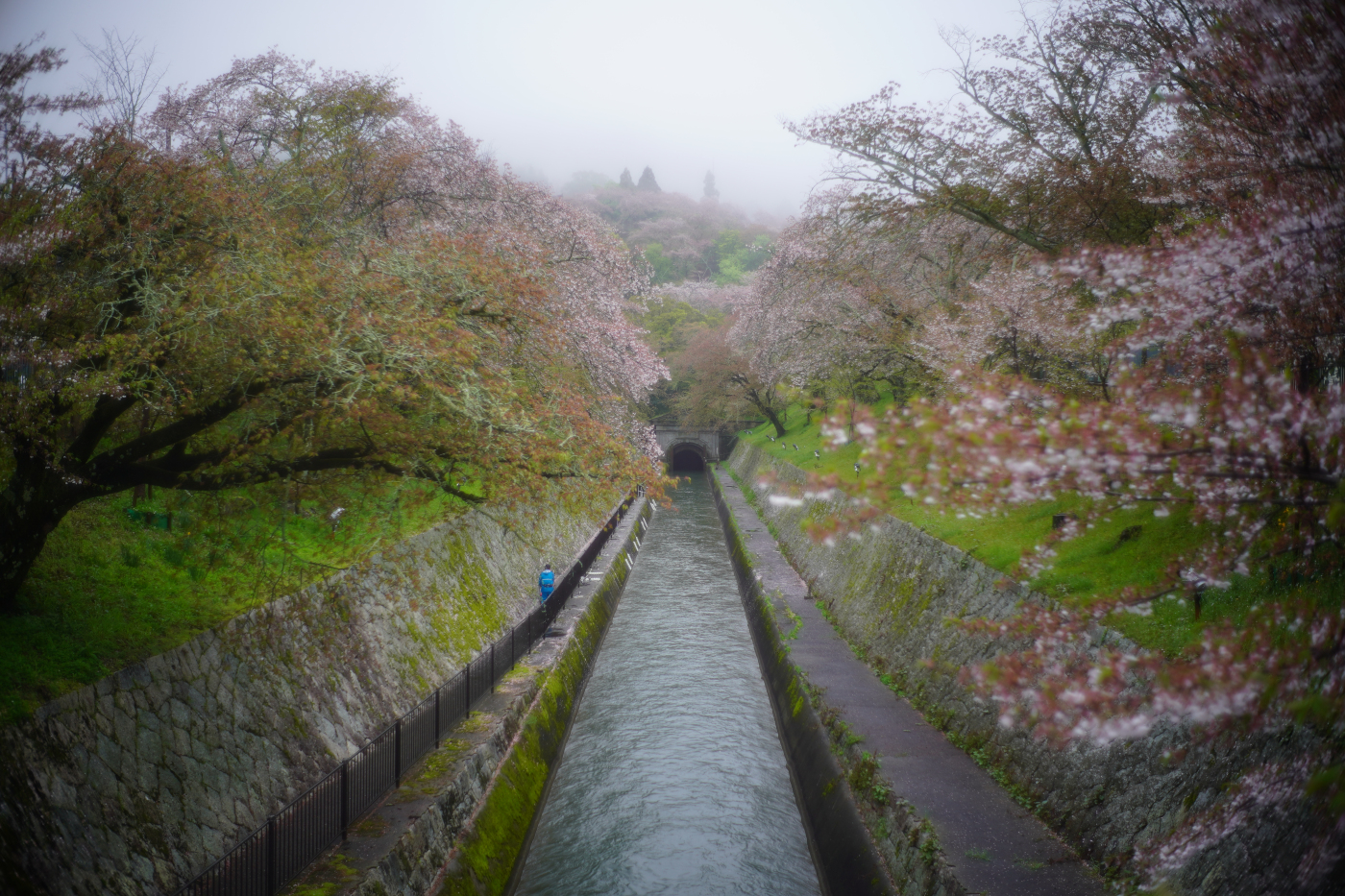 今日は雨、自転車の転倒から一月が過ぎて足の痛みは良くなってきた。傘をさして杖を持てば両手ふさがりでは写真も撮れないから杖なしで三井寺へ出かけた。疏水の鹿関橋の上も静かだ。雨の日の桜が美しいと思うのは少し憂いを感じるからと雨情を楽しんだ。デジカメにはお気に入りのマニュアルレンズを付け、久しぶりに写真らしい写真を撮ろうとおもった。唯それだけのこと・・・