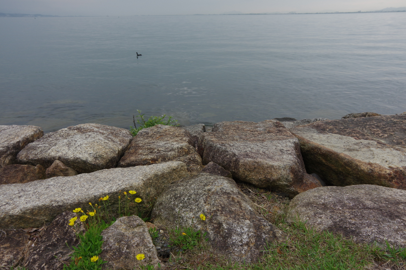 道端や何でもない処で咲くタンポポの花を見かけても余り写真を撮ることがないが、今日は朝の散歩の帰り道、仁王門から県道へ向かう手前に掛かる石橋の傍らでタンポポの綿毛を見て、写真を撮った。タンポポの花は詩人坂村真民さんがよく取り上げる花だ。其の中で「タンポポ魂」と「綿毛のように」は短い詩でも真民さんの優しさが伝わってくる、帰宅後、真民さんの詩集を開き読んだ。タンポポ魂は僕の好きな詩だと口に出して読むと、雨の日も気持ちが明るくなって来た。散歩から帰り、雨が降る前に湖岸ポタリングに出かけた。打出浜湖岸でも黄色のタンポポ?が咲いていた。?マークはタンポポに似ている花も多く在るからだ。琵琶湖を見ると太陽の光を少し残した雲が雨の降る前の美しさを見せてくれた。長閑な平和な時間が流れる中で、ウクライナでの戦争の惨禍を想像するのは難しいが、ウクライナ人が治めるウクライナと言う国からロシア軍は速やかに去るべきだ、そして一刻も早く停戦が成立してウクライナが平和な国に戻れるようにと空に願った。そして雨の降る前の美しい琵琶湖を写真に撮った。