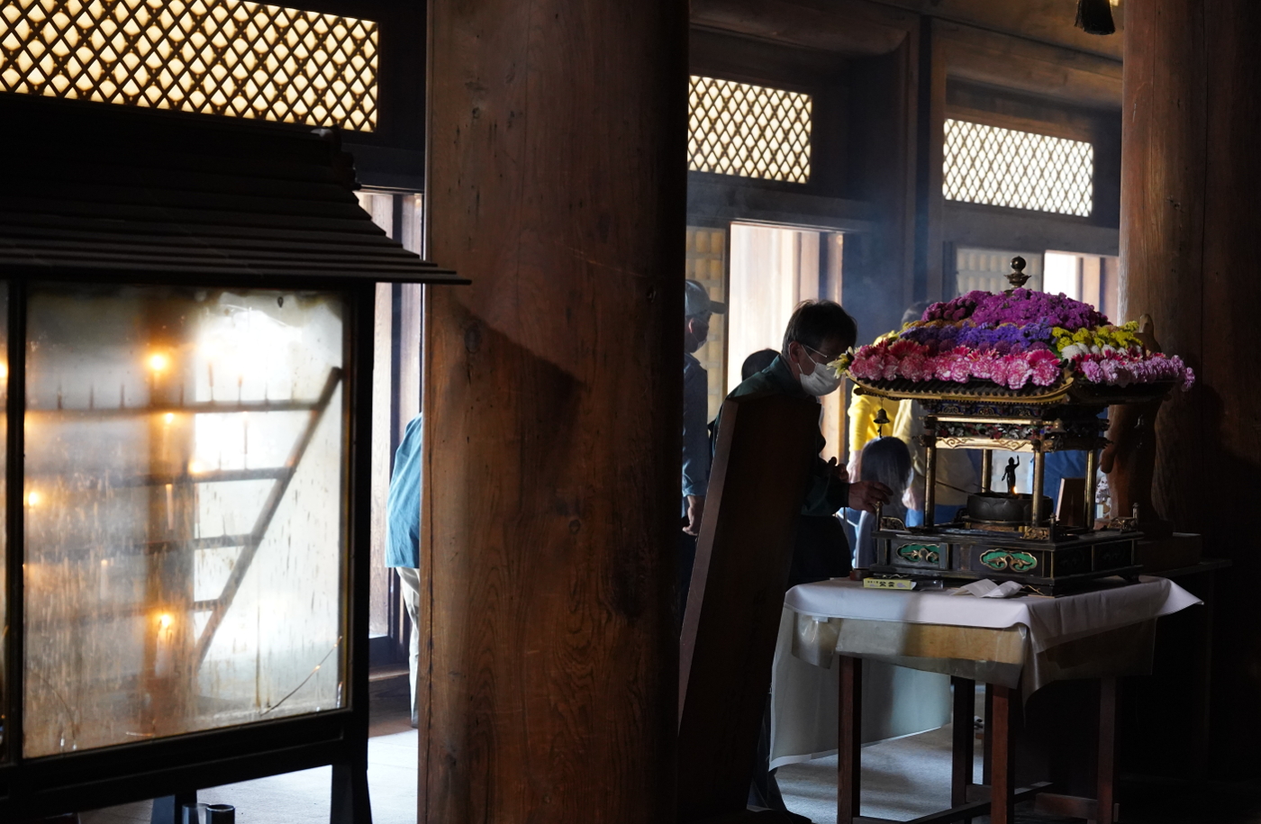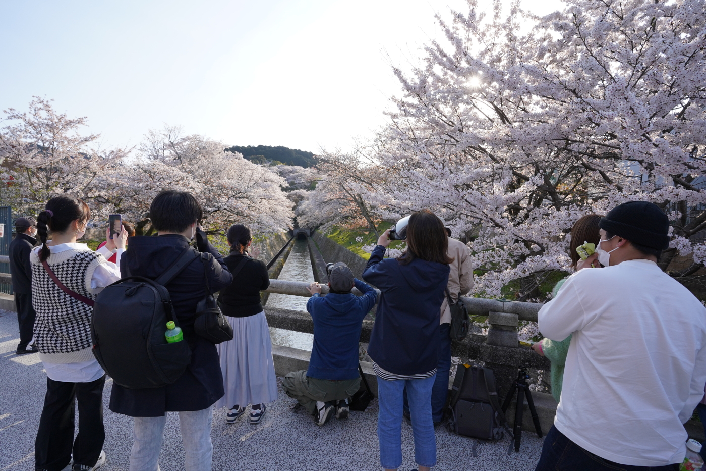 今年はお天気に恵まれて三井寺の桜も長く楽しめ、今日も朝から疎水、三井寺は賑わっていた。境内では、桜の花吹雪がお花見のシーズンの終わりを告げているように見えた。行き交う殆どの人はマスク姿でのお花見だ。一向に衰えを見せぬコロナウイルスの影響で此処二年間はお花見も自粛となって、寂しいお花見が続いたが今年は満を持してコロナの終息を待たずに、お花見が晴れて?解禁となり近くの名所は久しぶりの大賑わいとなった。一方、ウクライナでは戦火は止まず、其処に暮らす人達は大変な状況で春を感じるどころではないと思うと胸が痛むが、どうすることも出来ないが早く停戦になること願うしかないと青空を見るだけだ。
