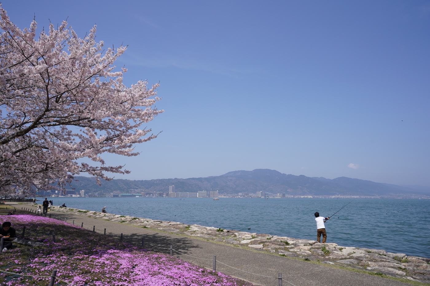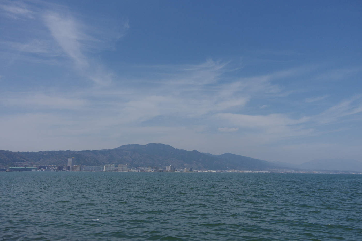 今日の三井寺は昨日の賑わいが想像できないほど静な佇まいで、江戸時代の俳人上島鬼貫が読んだ、花散りて また静なり 園城寺 の句のように境内では人の姿も無く鶯の鳴き声だけが響いていた。琵琶湖は蜃気楼のシーズンに入り、昨日は打出浜湖岸では蜃気楼を写真に撮る愛好家が集っていた。琵琶湖の眺望は春霞が掛かり蜃気楼をくっきりと見ることは出来ないが、望遠レンズで撮って見ると上方蜃気楼で琵琶湖大橋の橋桁が伸び何時もより橋が高く見え、辺りの建物も上方に背伸びしているような写真が撮れた。今日も蜃気楼が出ているが撮影には条件が悪く僕は撮るのを諦めた。でも湖岸には三脚にデジカメを装着した愛好家が数名見られた。打出浜から比叡山を見ると上空には巻雲が見えお天気は下り坂かと、久しぶりに観天望気を楽しんだ。
