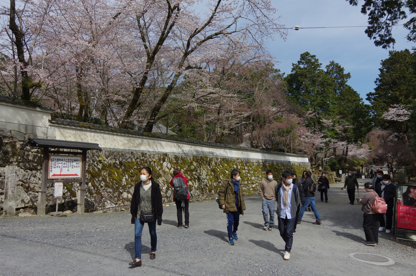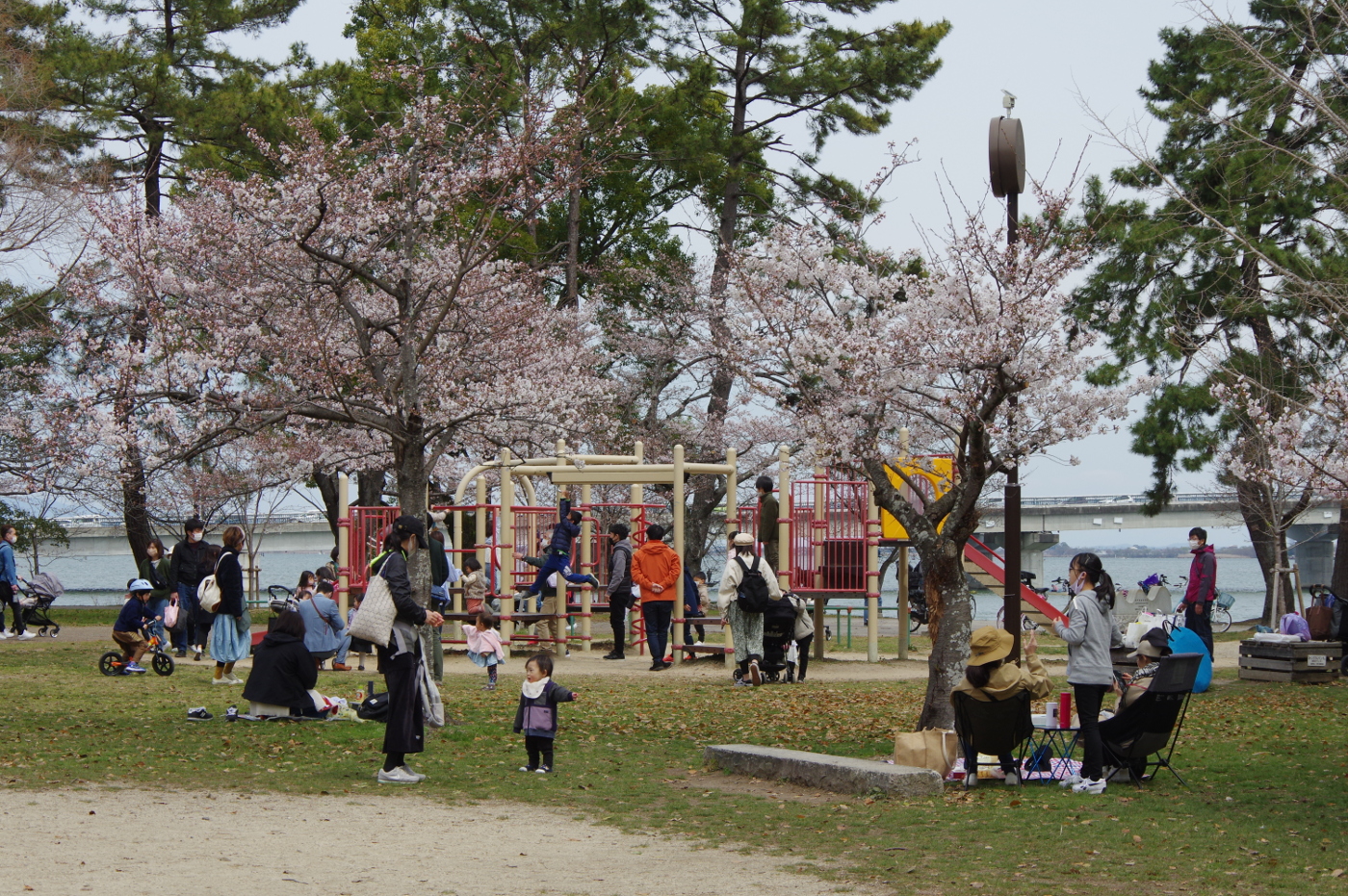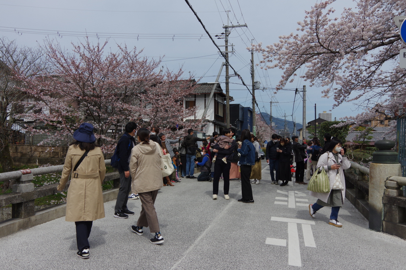 我が家の横を走る県道は桜のシーズンは通行量が多くなるのは桜の名所三井寺へ向かう車が多くなるからだ。通称大門通も朝から交通渋滞が起きているのは三井寺の駐車場へ入る車が多すぎて、時間が掛かるためだ。京都嵐山のオーバーツーリズムでの混雑ぶりが思い出された。問題は県道が狭く普通車でも離合が困難な場所も在るからだ。大津市の都市計画の中でも道路整備は遅れているとおもった。今日は近くの鹿関橋も朝から桜見物の人を多く見かけた。三井寺の境内も行き交う人の賑わいはコロナ以前の観光シーズンを彷彿させた。僕は混雑を避け、過去の桜の名所長等公園へ向かった。胡坐やムシロを敷いて、お花見をする姿もなく静な佇まいだ。良く見ると数人の人を見かけるが昔の賑わいを知る僕は余りにも寂れた公園を見ていると少子化で人口の減った未来の大津を見ている様で寂しくなった。午後は膳所公園へ出かけた。此方は家族連れが健康的な、お花見を楽しんでいた。少し露店?バザー?のお店も並んでいた。見かける人たちは皆マスクをしていた。コロナ三年目となった今年もコロナは人間社会に影を落としたままでは困ると、早くマスク無しの日常に早く戻って欲しいものだ。