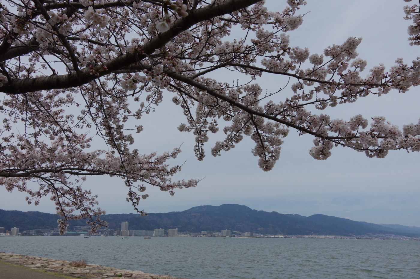 写真を多く撮ったので写真だけでもと・・・長等公園は本当に静だ、少年時代はお花見と言えば長等公園だった。大人たち夜遅くまで桜の下でボンボリの仄かな灯り照らされた中で酒宴を繰り広げていた頃の賑わいは何処へ消えてしまったのかと存在感のある桜木に訪ねたいとおもった。膳所公園は膳所城址で、新しく造られた塀と堀が昔、お城だった事を思い起こさせてくれた。におの浜のソメイヨシノも見頃となり、車を止めた、僕は有名な海津の桜を見にゆくことが無くなったが湖岸で見る桜で充分満足できた。