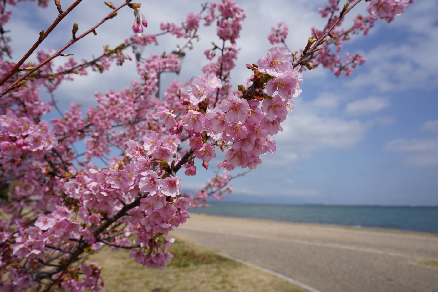 湖国の春は比良の八講(3月26日)が済まないと本格的な春にはならないと昔から言われていて祖母も比良の八講の事をよく言っていた。今日も昼間は春の陽射しを受けて膳所由美浜の河津桜を見に出かけた。先日、咲き始めたばかりの河津桜は見頃になっていた。ピンク色の花を見ても心が華やぐことはなかった。ウクライナのロシア軍の侵攻によって街が破壊され多くの市民が犠牲になっている現実を突きつけられても何も出来ないからだ。世界大戦への危険性を感じさせる現況を心配しながらニュースを見る毎日だ。そして早く戦争が終結することを祈るしかないと青空を見上げた。夕方近く湖岸へ向かうと北西風が強く吹き南湖にしては波が高く、石垣に打ち寄せ波しぶきが上がっていた。こんな日は彼方の原発群若狭の老朽原発の事が心配だ、もし事故が起きれば琵琶湖の水が放射能によって汚染され近畿1400万人の命の水が失われる事態になることは予想されているのに廃炉どころか老朽原発を再稼働することは狂気の沙汰だ。ホモ・サピエンスが霊長類の長と自負するなら降りかかる難問題を解決してこそ霊長類の長として誇れるようになるではとおもった。