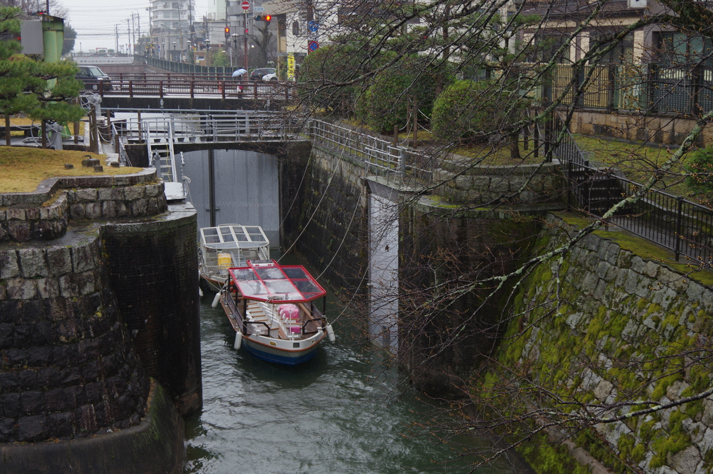 近くを流れる琵琶湖京都疎水では暫くメンテナンスで流れが止められていたが昨日から水門が開けられ疎水の流れが戻った。今日、鹿関橋から流れを見ると通船が二艘見え、いよいよ春の観光シーズン幕開けかとデジカメで撮った。暖かくなリ、湖岸では園児が楽しく遊ぶ姿を多く見かけるようになった。