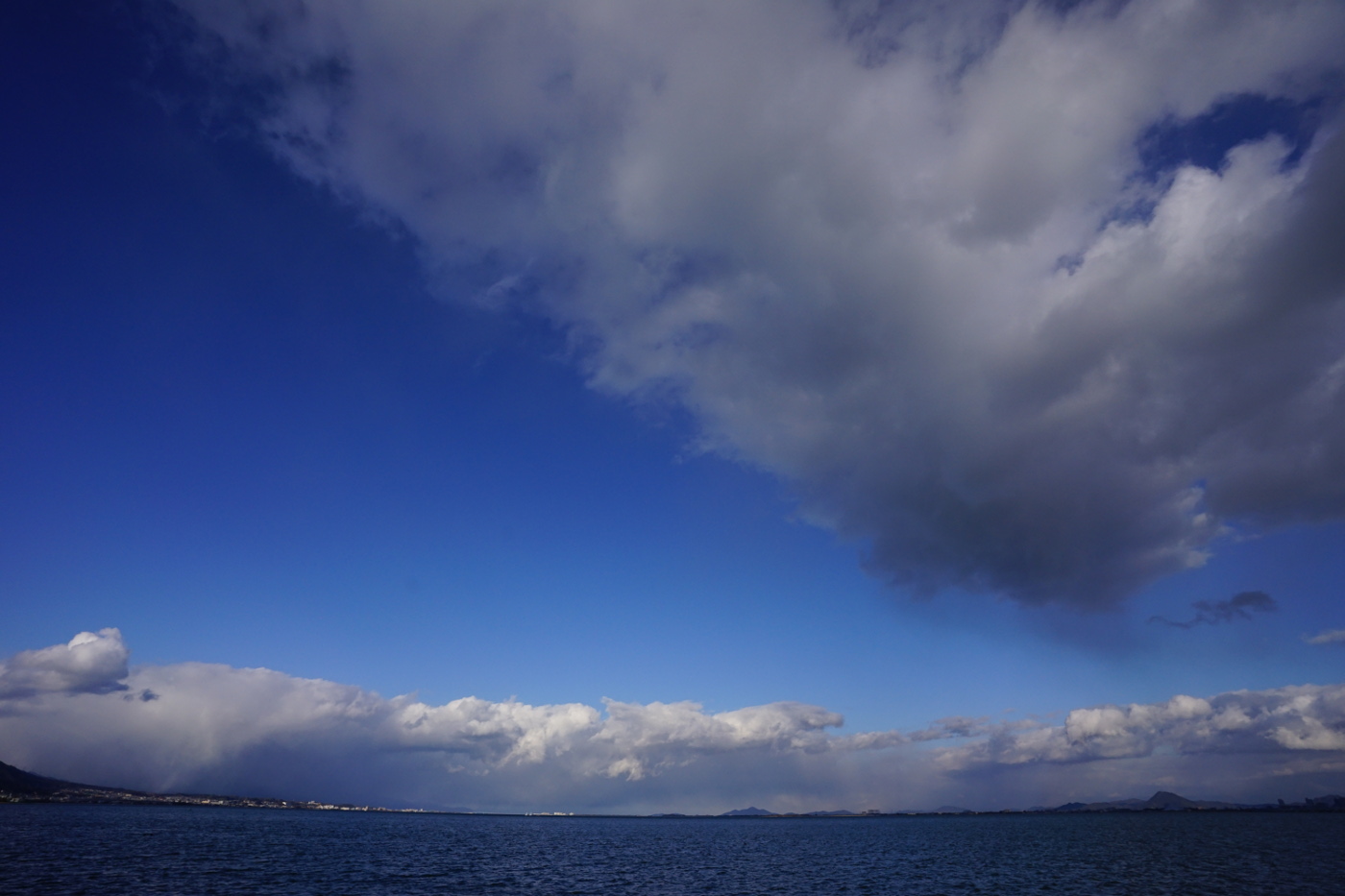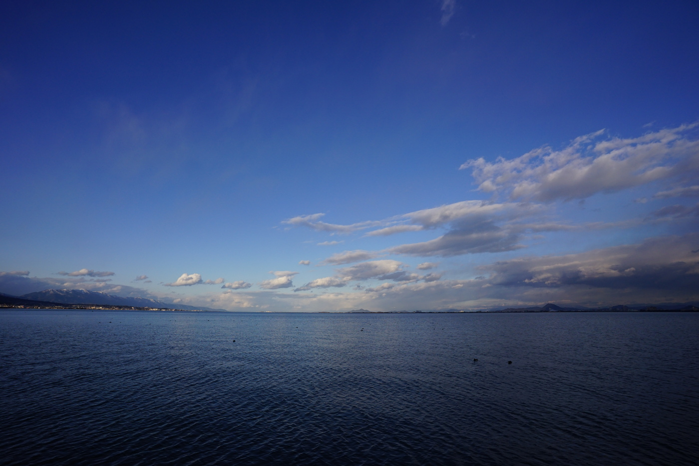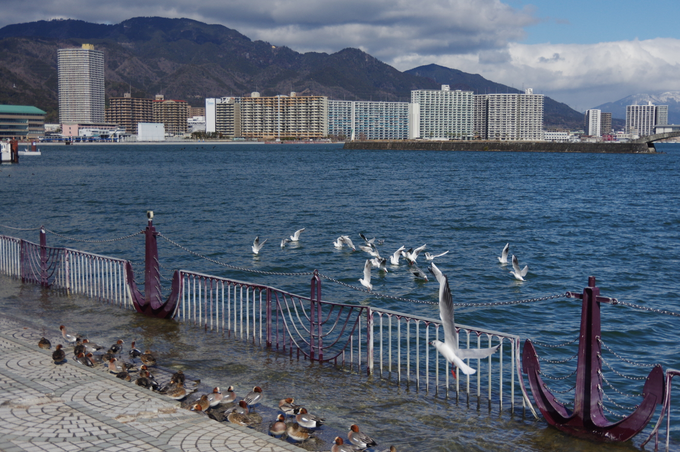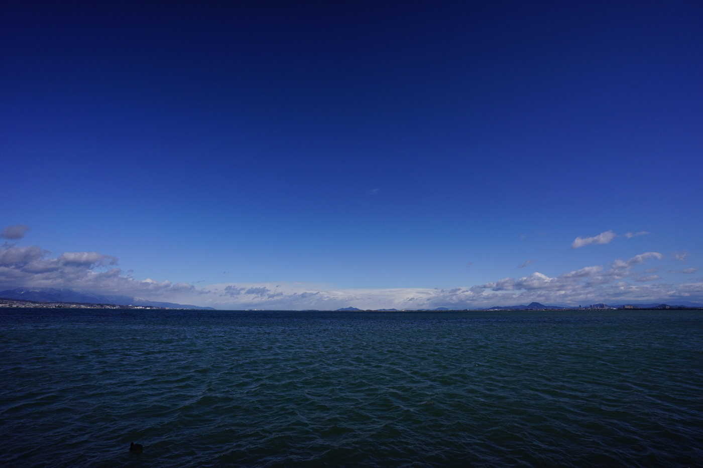 今日も琵琶湖は冬型の強い偏西風が吹き荒れて湖上は白波が立っていた。山用のダウンを着て防寒対策は万全で湖岸ポタリングで膳所由美浜へ向かった。琵琶湖の水が全層循環したとニュースが数日前に伝えていた、去年に続いて琵琶湖が深呼吸できて良かったと湖岸から波立つ湖面を眺めると水も綺麗に見えた。全層循環の事は今から53年前に大津青年会議所JCのメンバーで琵琶湖の富栄養化を問題にした環境映画を作る時に滋賀大学の岡本巌教授に琵琶湖の水の表面の水が冷たく、そして酸素を多く含んだ重い水が湖底に向かうと深層と表層の水が混ざり湖底まで酸素が届く現象を琵琶湖の深呼吸と言うと話された取材時を思い出してきた。映画「青の輝き」は16ミリ映画で彼方此方の集いで上映された。今では其のフイルムの無いと聞く、幻の映画になってしまったが僕の記憶のスクリーンに上映する事が出来るのは撮影カメラマンだったからだと思った。今日の琵琶湖は映画の題名通りの青い琵琶湖が冬空の下で美しく輝いていた。