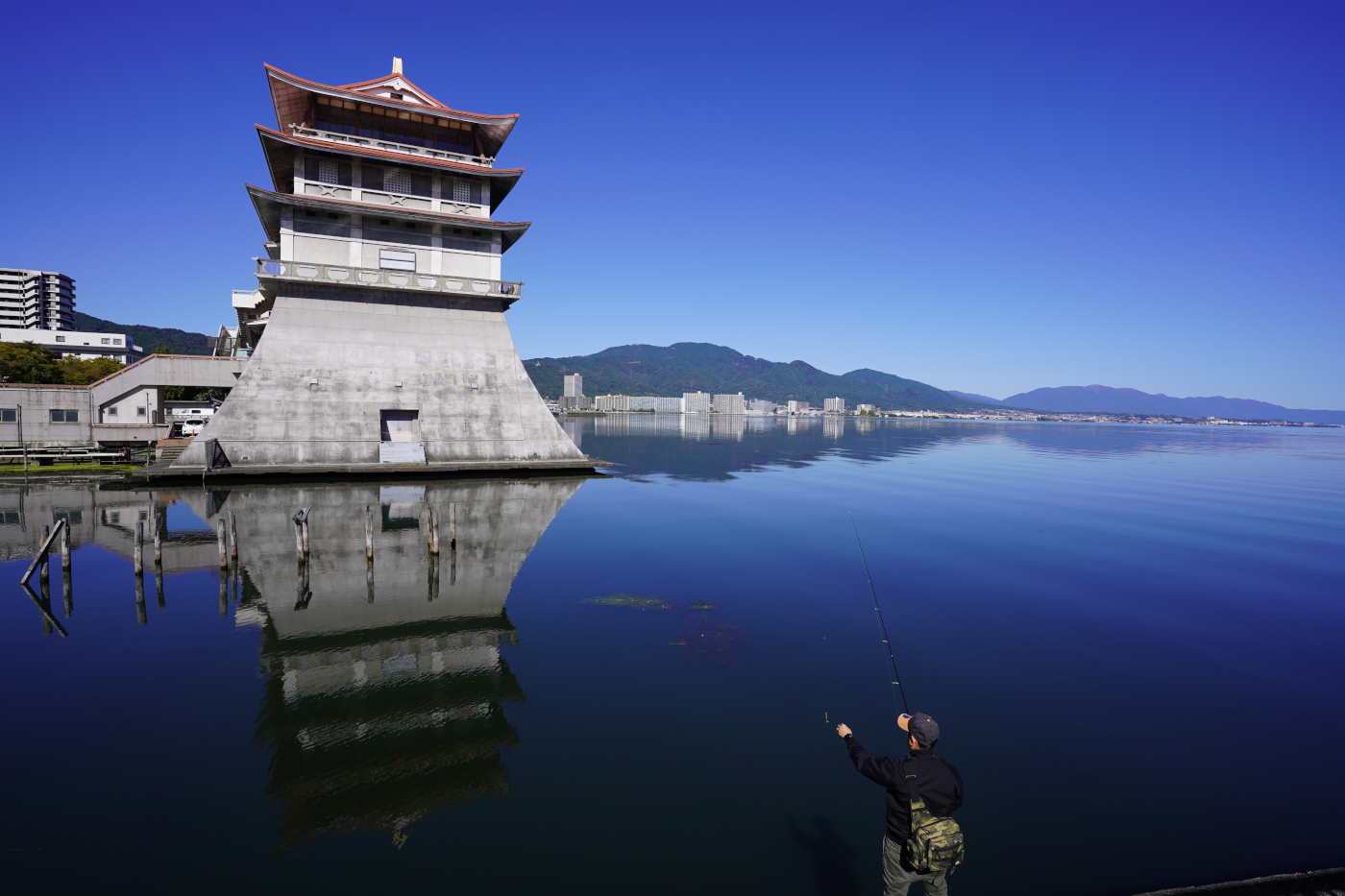 秋の観光シーズンに入っても大津の町は静かだ、賑わうのは夏の花火大会と10月の大津祭りの日だけは昔の賑わいを思い出させてくれるが日常は静かだ。今日も浜大津の市民お祭り広場ではイベントが行われていた。お天気も曇り空で湖岸で釣り人の姿もなく静かな佇まいだ。でも湖岸に佇んで雄大な景色を楽しむには静寂が良いと思った。