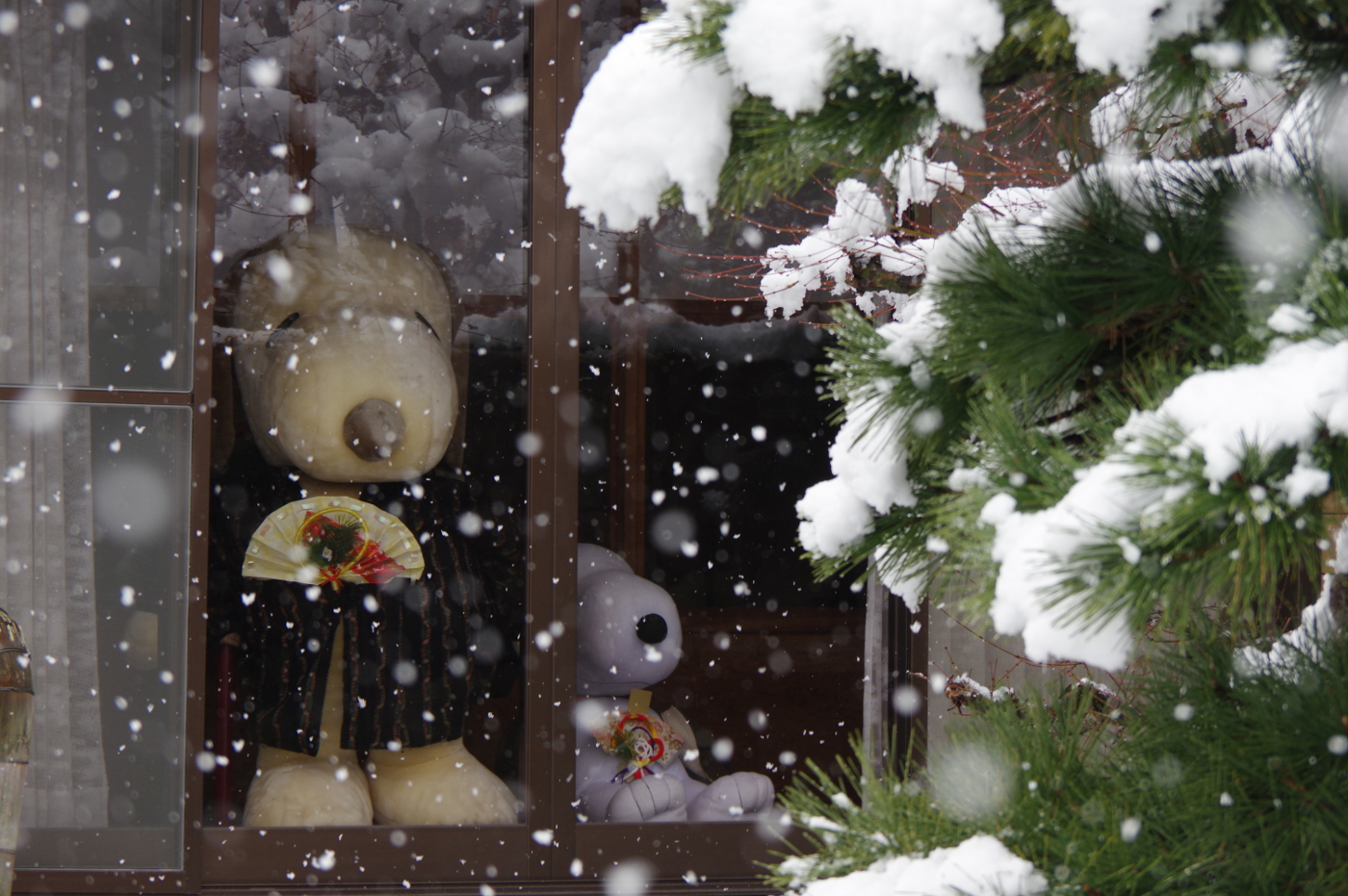 大津も、こんなに雪降りの日が続くのは珍しいことだ。早めに朝食を済ませ雪景色をとデジカメを持って三井寺へ向かった。雪は牡丹雪?で道路では溶けて地面が見えているが鹿関橋の欄干は綿帽子を被っていた。疎水の雪景色はマンネリと分かっていても撮ってしまう、でも今日は雪が枝に積もり六花桜の満開を楽しんだ。雪は降り止まず展望台からの遠望は見えなかった。蓮池は静で来訪鳥(アオサギ)の姿はなかった。今日は49日に一度の検診でKクリニックへ出かけた。坂本は雪が多いのではと久しぶりに登山靴を履いた。坂本は思った程、雪は積もっていなかった。登山靴と言っても軽登山靴で歩きやすく靴に急かされて足が進んだ。途中、民家の縁側に飾られたスヌーピは未だ迎春姿で雪を眺めていた。背中のリュックからデジカメを出すのも面倒と、でもポーズしているスヌーピに悪いと思いカメラを出して撮った。Kクリニックでは、珍しく待ち患者なしで直ぐに診察室へ、もちろん異常なしだ。残念ながら鶴喜そば、は休日でお昼抜きと家を出る時から决めていた。帰りも叡山坂本駅まで歩いた。少し左足(サイボーグ)が疲れたようだ。一万歩は超えたかなと、車窓からの眺めは雪国の様に見えた。