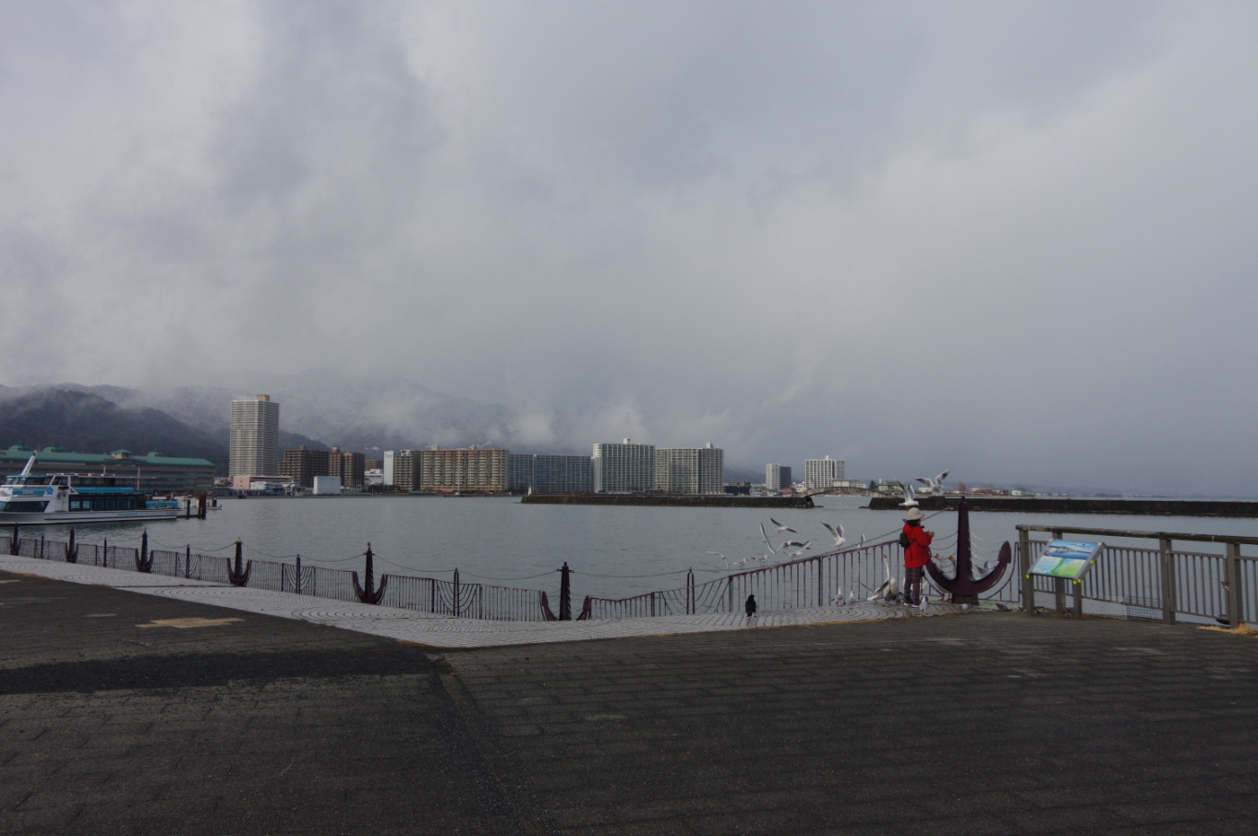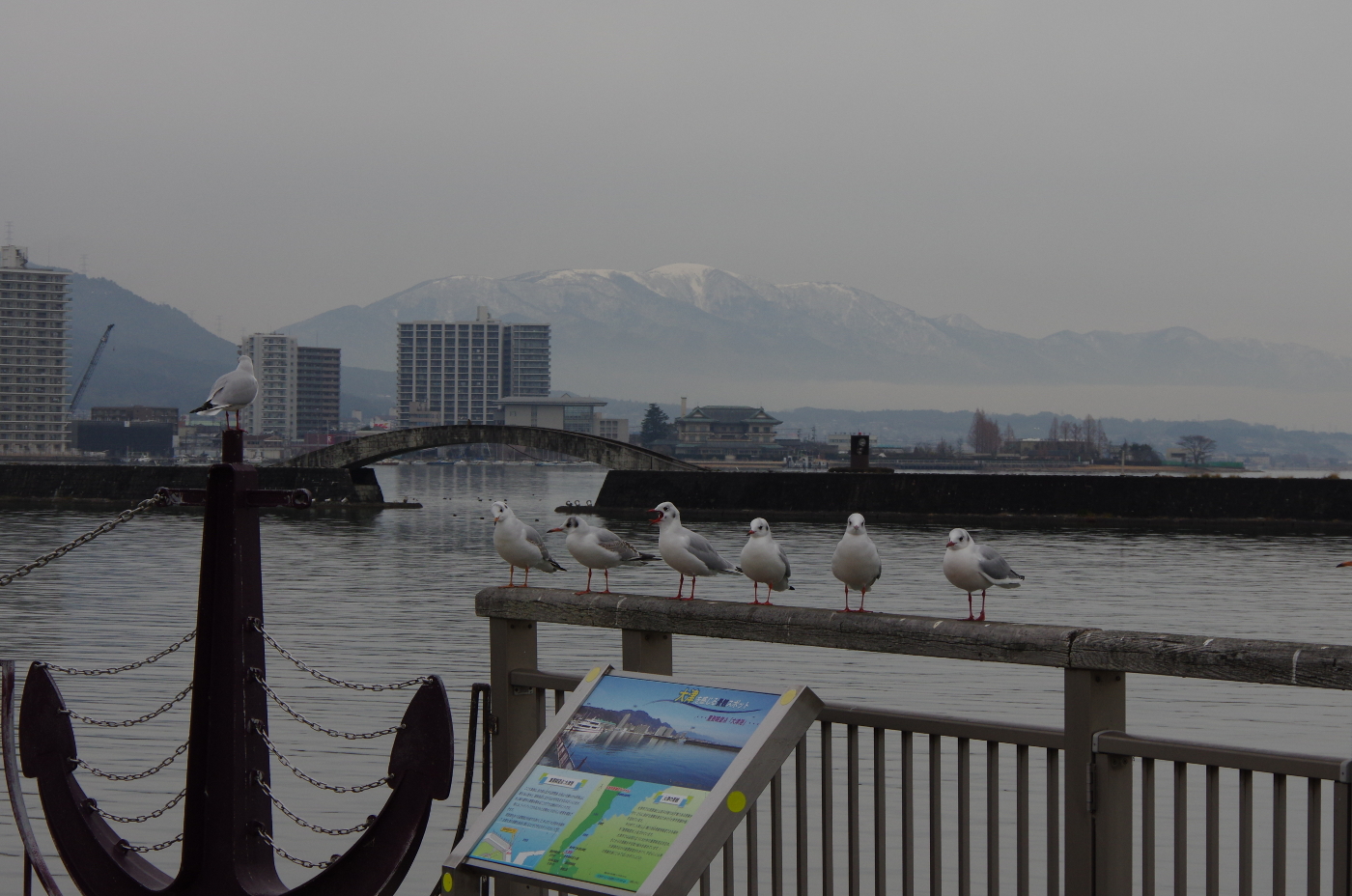 浜大津港ではユリカモメが餌に集まっていた、良く見るとスズメ,ハト、ユリカモメそしてちゃっかり、カラスの姿も見かけた。