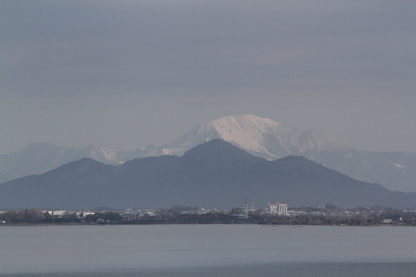僕の写真三昧が続くのも福島の友人Hさんが機材を提供してくれたからだ。三井寺の展望台から望遠ズームで伊吹山と近江八幡山を撮った。