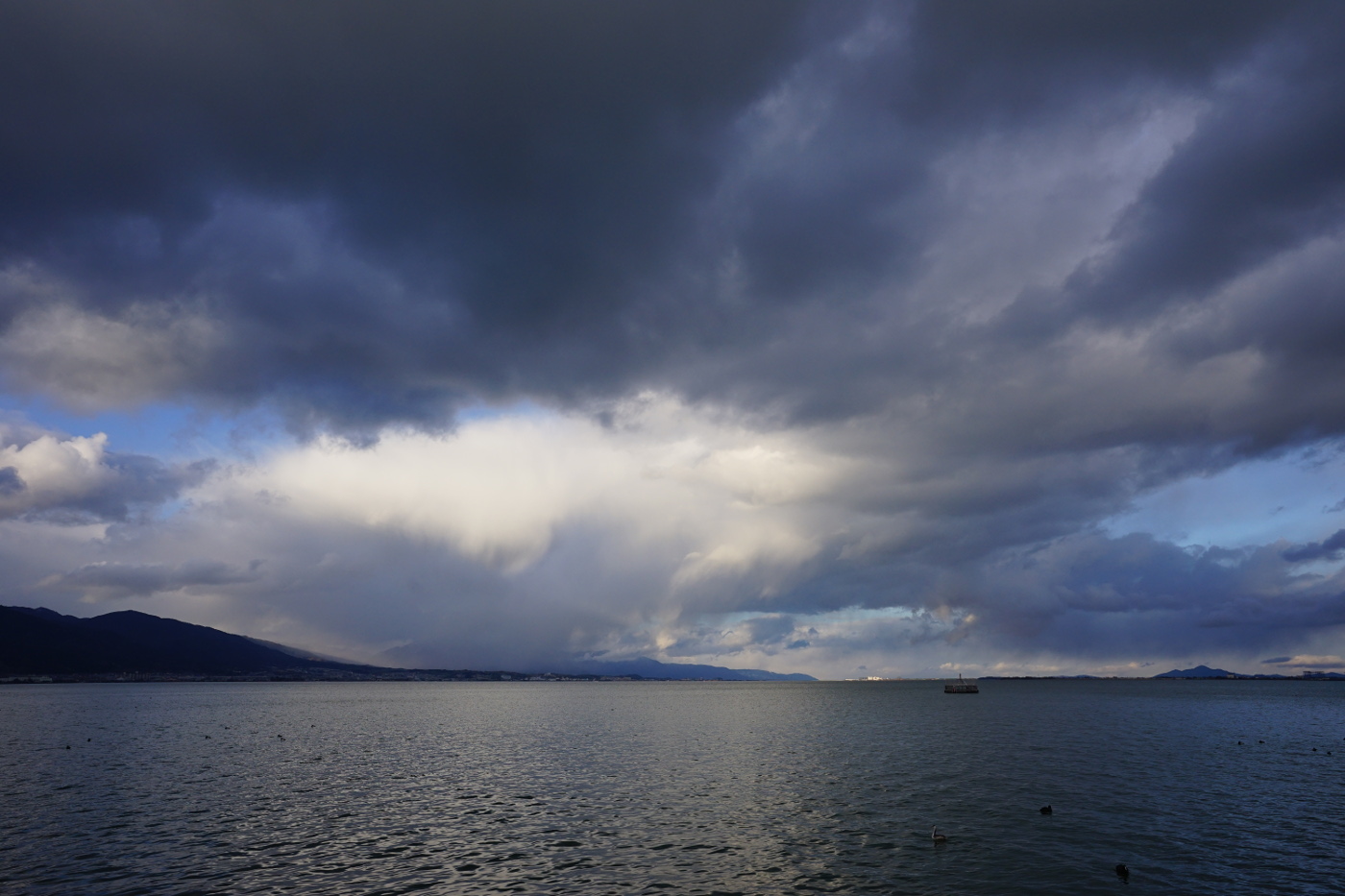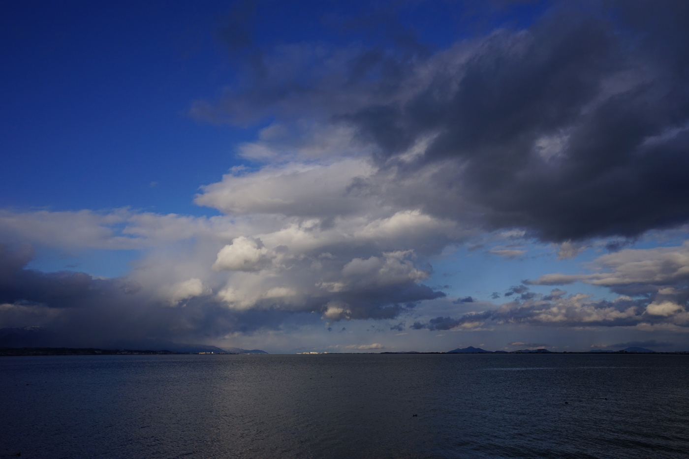 今日も琵琶湖上空では積雲が豊かに活動して雲好きの僕には嬉しい日となった。積雲は低い高度で遊んでいるから僕が乗っていたセスナやスーパーカブ等の小型飛行機でも雲と戯れる事が出来たから、今でも好きな雲は?と聞かれたら、積雲に決まりだ。打出浜湖岸から湖上を見ると、比叡山と比良山の間を抜ける偏西風の影響を受けてか?時々、三段重ねの積雲や時には、レンズ雲も、今日は三段重ねの積雲だ。高度も三千フィートから五千フィート位だと想像した。辺りを見ると、におの浜のパビリオンではリモートワーク実証実験が始まったのか中で仕事をしている人を見かけた。コロナ禍の中で有名となったリモートワークだが出来る仕事はパソコンだが、美しい琵琶湖を眺めていては仕事に集中出来ないのではとパビリオンを見て思った。湖上の積雲は躍動しながら在るものは雪雲と合体?して雪雲のカーテンが風に揺れているようにも見えた。素晴らしい積雲のショーを湖岸から暫し楽しみ帰路についた。
