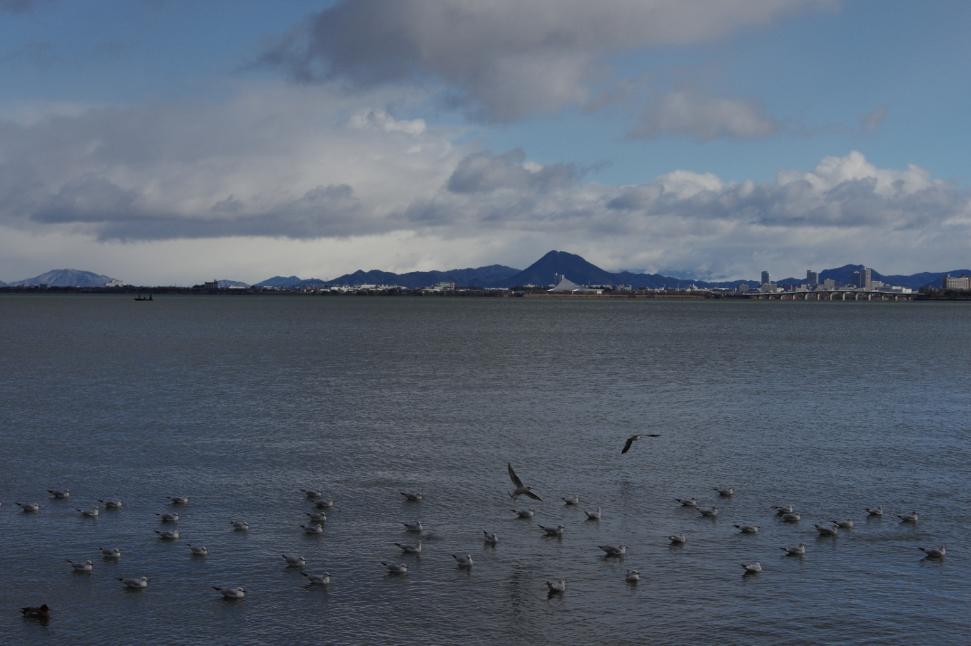 天気予報が大雪警報を伝えていた。去年もたしか年末寒波で多くの車が高速道路で埋まってしまった事を思い出した。スマホでFBを見ると知人のIさんが大雪の取材で向かった彦根の大変さを伝えていた。湖岸ポタリングで走る湖岸も今日は寒く何時もの防寒対策では間に合わなかった。ユリカモメは湖上で浮かんで寒さを耐えているのは水の方が暖かいのかな?と考えながらデジカメのシャッターを押した。今日も膳所公園までユリカモメを見に出かけるも、ゼロ羽だった。今年は渡来する数が減っているのかと、何時もなら入江に掛かる橋の欄干に整列している姿を思い浮かべた。帰路は向かい風で自転車の進む速度はジョギング並みで時間がかかった。