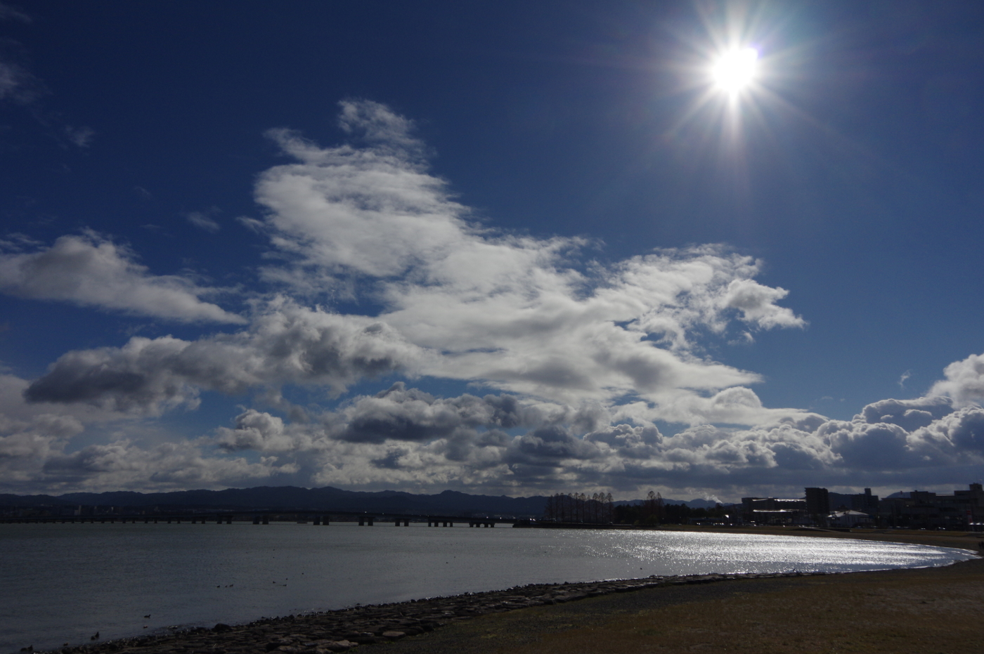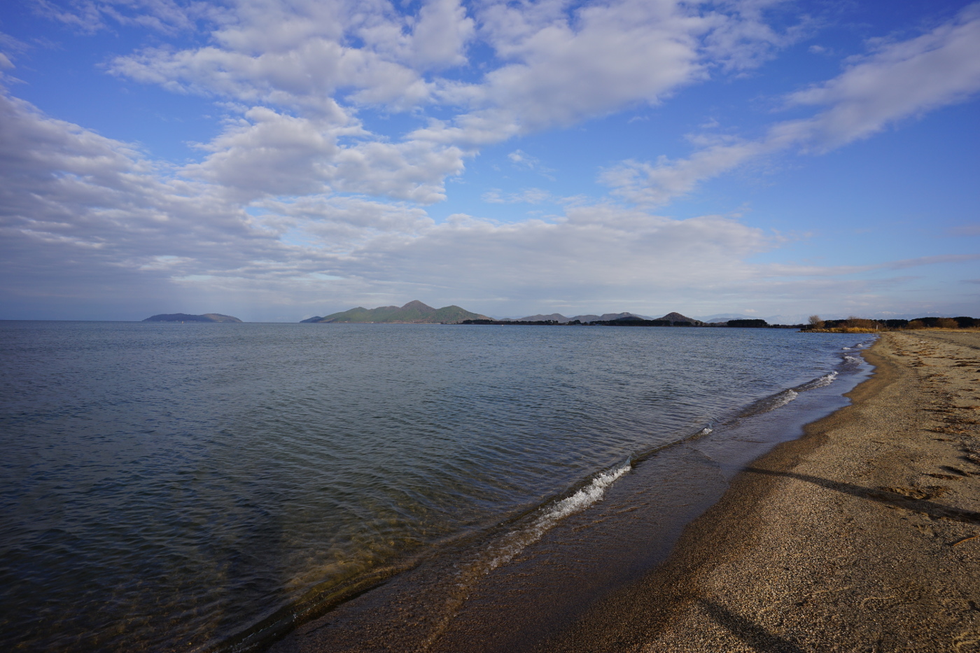 午前中の湖岸ポタリングでは浜大津港でユリカモメの整列している姿をデジカメで撮った。やっと長旅の疲れもとれたのかホモ・サピエンスとのコミュニケーションをとる気になったのかと暫しユリカモメの様子を眺めた。午後は友人の陶芸家Oさん作品撮影で琵琶湖の野洲市マイアミ浜へ出かけた。本当は明日の予定だったが、昼食後、のんびりとしていると、Oさんが車でやってきた。でも僕も今日は、天気も良く、青空だけでなく雲も美しく浜辺で作品を撮るには良いとおもっていたから・・・慌ててデジカメとフイルムカメラをカバンに詰め込み、Oさんの車でマイアミ浜を目指した。琵琶湖大橋を渡るのも久しぶりだ。オートキャンピング場もシーズンオフで辺りは人影もなく静だ。マイアミ浜に打ち寄せる小さな波が心地よいリズムを刻んでいた。車から大きな陶器の作品をOさん夫妻が砂浜まで運んだ。心配した太陽光も冬の優しい斜光が上手く作品にあたり、苦労せずに撮影できた。僕は技術もないから自然光線が何時も味方になってくれるのを待つだけだ。Oさんの作品は琵琶湖の砂浜で水と空そして雲を入れて撮るのが一番と考えているから・・・本当に自然の気象条件が合わなければ撮影できないからと今日の、お天気に感謝した、そして琵琶湖にも感謝・・何時も僕が写真を撮っている浜大津近辺から見ている琵琶湖は南湖で北湖とは12:1で圧倒的に北湖が大きい、久しぶりに太湖の大きさを感じながら楽しく撮影できた。でも少し失敗談も折角持ち出したフイルムカメラは初歩的ミスをしてしまった。基本が如何に大切かと肝に銘じて反省する日となった。そしてOさんが日を間違えたのも良い結果になったからとデジタルカメラの画像を確認すると良く撮れていて安心した。