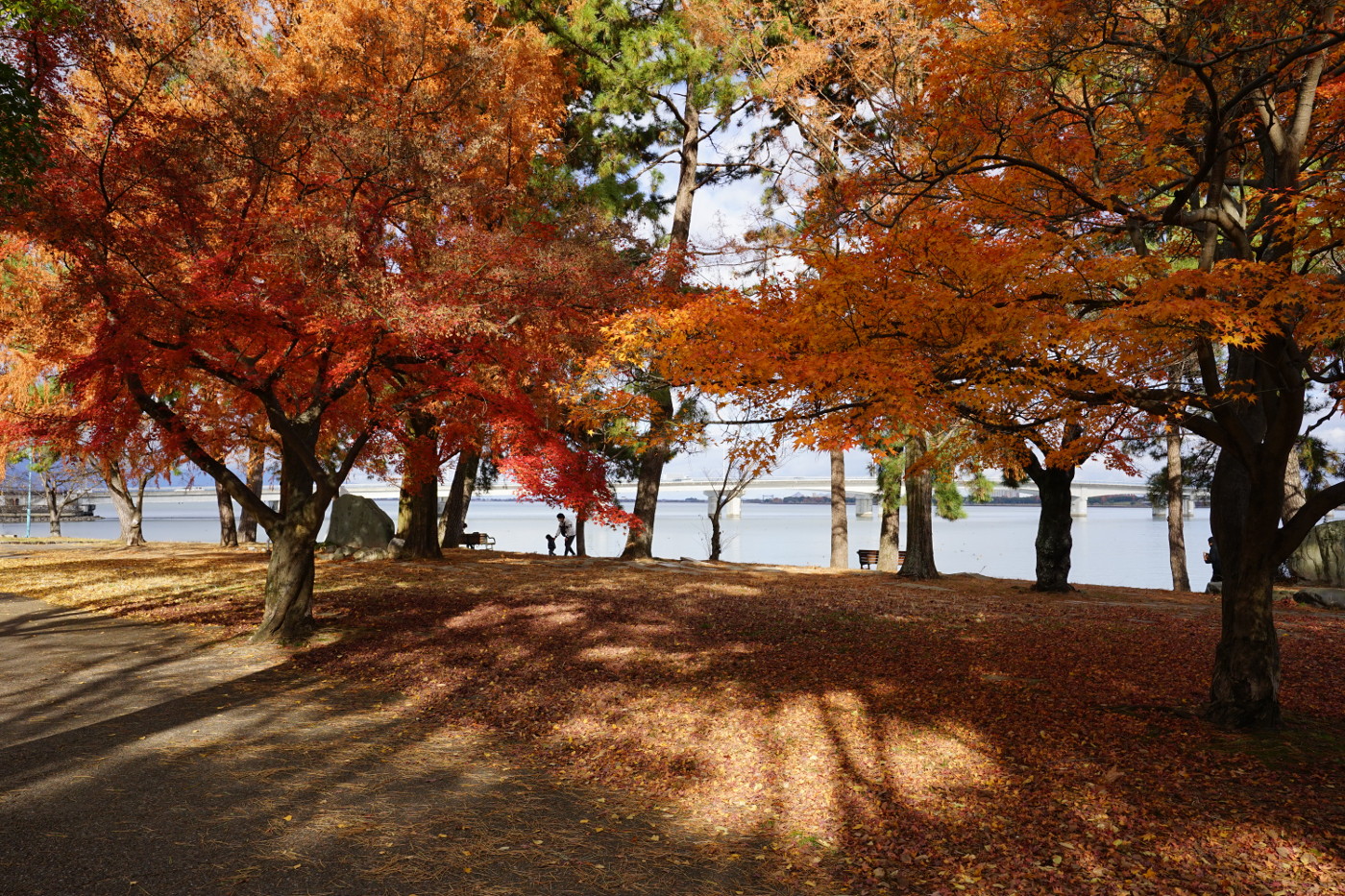 新型コロナウイルスは変異してオミクロン株になり、世界に広まりそうだ。最近は感染者も少なくなり少し日常が戻ったと思ったら、また六波がと聞くと少し憂鬱になった。でも気分だけは明るくと湖岸ポタリングに出かけた。先日に降った雨も琵琶湖の水位を上げることはなかった。膳所由美浜のサニービーチも人工の砂浜であることが一目瞭然となった。常水位の時は砂の部分まで水が来ているから自然の砂浜に見えるが、水位が下がり砂止めの石組みが露わになって人工砂浜だと分かるよになった。近江大橋の橋桁には常水位の水跡が見え橋が高く感じた。浜大津港では大型観光船や学習船うみのこ号も出払っていて最近は桟橋には船がなく見晴らしが良くなり西大津が見渡せる時が多くなったのはコロナが休息しているからだと広々とした港湾を見た。午後は和田神社へ銀杏の葉の積もり具合が気になり出かけると、昨夜の風で飛ばされて思ったより積もっていなかった。拝殿には来年の干支の虎が描かれた大絵馬が飾られていた。季節は冬へと進む中、どうかオミクロン株が活躍しないことを願いながら神社を後にした。