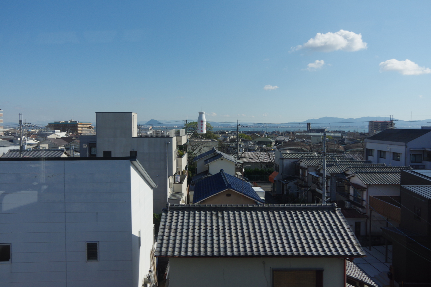 今日は忙しい日となった。午前中は坂本のKクリニックへ検診に出かけるのは、何時もなら京阪石坂線で向かうのだが今日は湖西線JRで向かった。車窓風景は高架を走るから琵琶湖の眺めは良好だ。帰路も湖西線に乗った、車窓から僕が撮りたい場所があり早くからカメラを構えて狙うのは大津際川飛行場のランドマークの毎日牛乳の大きな牛乳瓶を撮るためだ。その大きな牛乳瓶は飛行場が無くなった今も存在感を示していた。そして今日の午後、びわ湖ホール大ホールで近江ARS「染め替えて近江大事」と銘打って滋賀県の文化等をもっと世界に発信しようと情報編集者の松岡正剛氏と三井寺の福家長吏とが共同提案者として新しく出発する集いが今日、開かれた。其の行事に参加するために今日は湖岸ポタリングもお休みにした。大ホールは取材した事も在ったが長吏就任の祝賀の第二部で友人美術作家Oさん達と舞台に上がって少し話す事になったのは福家さんの友人でもある僕が堅苦しい挨拶が続くからほぐし役で選ばれた次第だ。舞台の上から客席を眺めながら超短時間でスピーチを難なく済ませた。そして始まる前に松岡正剛さんと少しお話できた。そして飛行機の話題に、利根川大利根飛行場で活躍していた飛行機エアロンカの話ら、そして今は亡き栗原生死さんの話まで進んだ。松岡さんも飛行機野郎だったのかと嬉しくなった。これも大きな牛乳瓶のお陰だと思った。