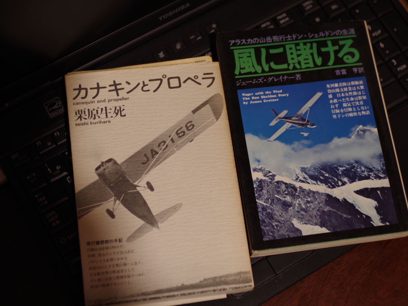 僕が今、読んでいる本「風に賭ける」と「カナキンとプロペラ」は飛行機野郎が書いた本だ。風に賭けるはアラスカのブッシュパイロットと言うより山岳飛行士ドン・シェルドンの実話だ。作者もパイロットだから航空用語が多用されていて時々、操縦している錯覚を覚える時もあり楽しく読み進んでいる、飛行機がコンピュターなどに支配されない人間の技量で思うように飛べた時代の物語は僕が飛行機操縦に夢中になっていた頃も同じだったから親しみを感じながら物語に中に入って行けた。そして「カナキンとプロペラ」著者栗原生死は同じ飛行機野郎で僕が大津際川飛行場で飛んでいた頃、栗原氏は大利根飛行場で飛んでいた。そして嬉しくなるのは飛行機の共通点が多く、ドン・シェルドンの操縦するパイパースーパーカブPA18で羽布張りの飛行機だ。そして栗原生死が愛する飛行機はエアロンカ7ACでこれも羽布張りの二人乗りの小型機だ。僕もスーパーカブPA18 を操縦していた。時代はドン・シェルドンはアラスカで僕よりも早く時代が少し違うが、僕は栗原生死さんとは同じ時代だが、歳が僕よりも12歳上だ。自家用操縦士には僕が先に合格しているが飛行機野郎としては先輩だ。凄いのは文章で、上手さは卓越していて航空界の文芸賞もらっているのが「カナキンとプロペラ」だ。今日も「カナキンとプロペラ」を読むと誌の様な文章に飛行機の風を感じながら読んだ。残念なのは、栗原さんは天国に行ってしまった。飛行機野郎の間では月曜日の男と言われて関東方面では有名だった。仕事が床屋で月曜日が休日で此の日だけが大利根飛行場に行けるからだ。剥き出しフランスパンを三本、リュックに突き出したまま飛行場へ出かける姿を僕も見たことがある、僕も大利根飛行場に向かう時に偶然に見かけたからだ。そして「カナキンとプロペラ」には栗原生死の直筆で大利根の鬼から大津の鬼、中島省三・・・と記した本は今も大切にしている、そして最後のページには松岡正剛氏が後書きを載せている本は1979年に発行された。