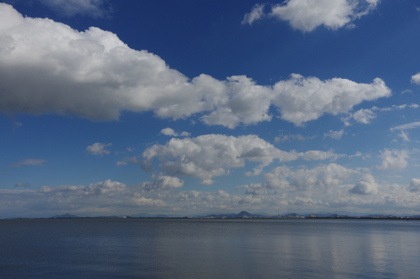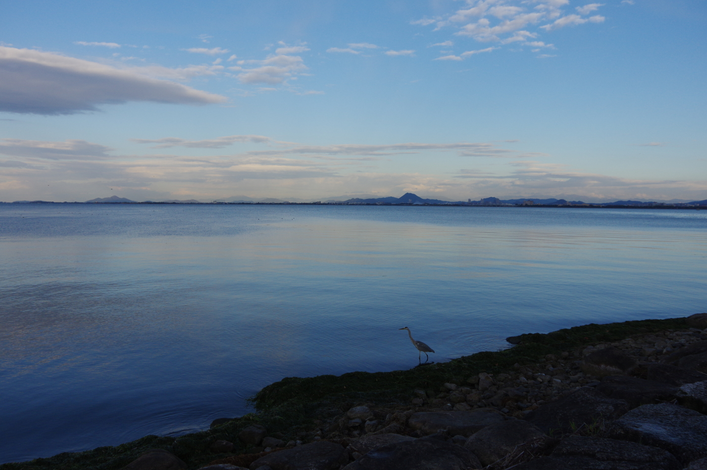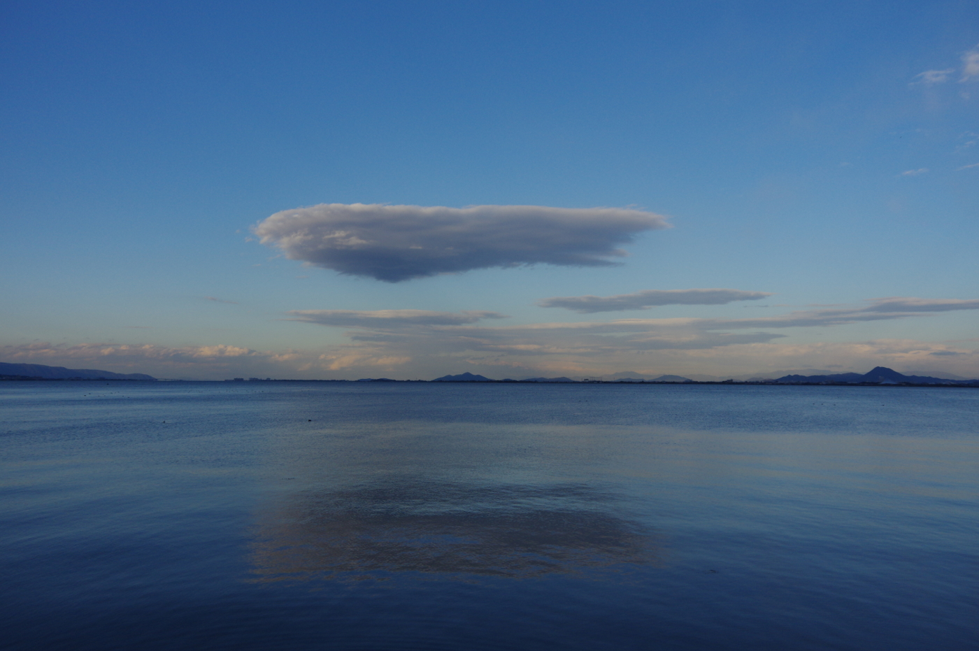 三上山は近江富士として地元の人達には親しまれているが僕は一度も登ったことがない、でも上空からは何度も見ている山だ。空から見た三上山の思い出は熱気球で傍を通過した時の情景は今でも忘れることはない、それは熱気球の着陸する場所が無く地上を探して飛行している時に野洲川と三上山を熱気球から写真に撮った記憶は鮮明に覚えている、でも着陸場所がなく気分は焦って緊張感が高まっていた。その後、運良く石部小学校の運動場に無事着陸できたから良かったものの、もし着陸できなければ信楽方面の山中に不時着していたかも分からなかった状況は楽しくもあり苦い思い出でだ。今日も湖岸から三上山遠望を楽しんでいると飛行機や熱気球で上空から見る三上山の姿が浮かんできた。三上山は打出浜から見る姿が富士山の姿に似ているから僕は好きだ。ムカデ伝説は有名で僕も歴博の映像制作て三上山のムカデを題材にした映像制作にもカメラを担当した。三上山を七巻り半のムカデは影絵で表現され残念ながら大きなムカデを撮る事がなかったと今日も三上山を構図の中にいれてシャッターを押した。