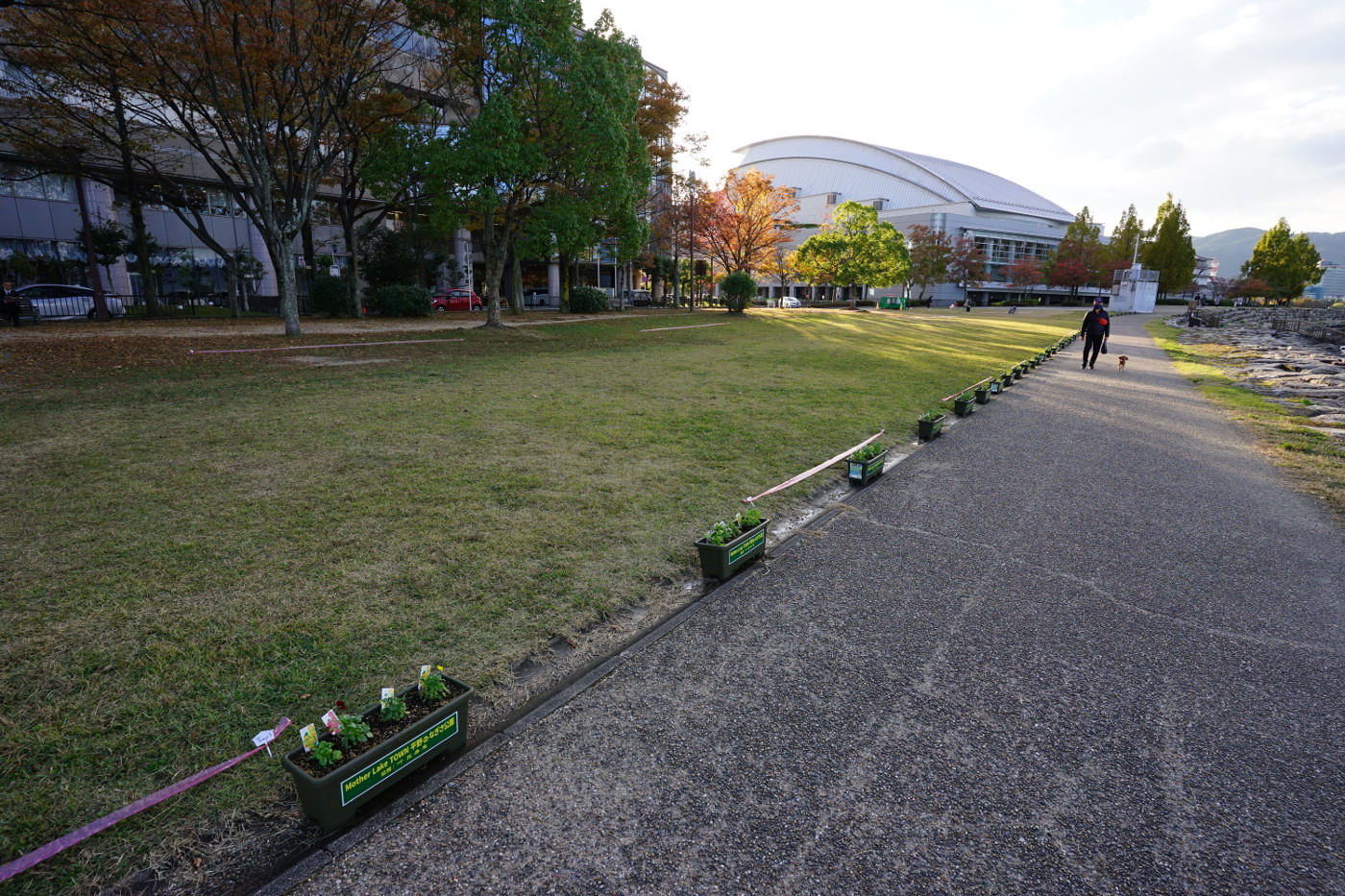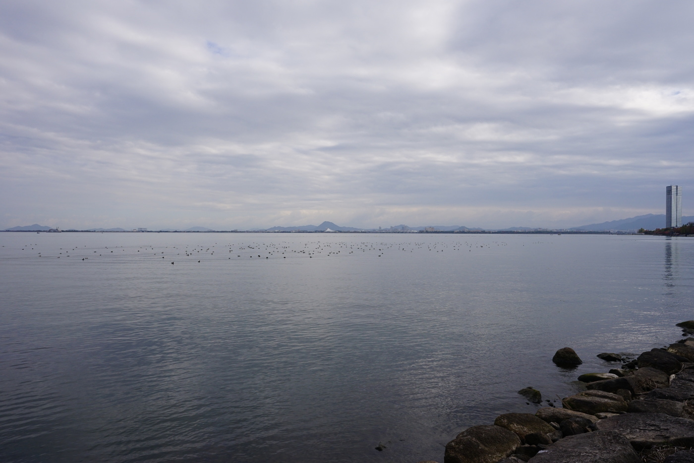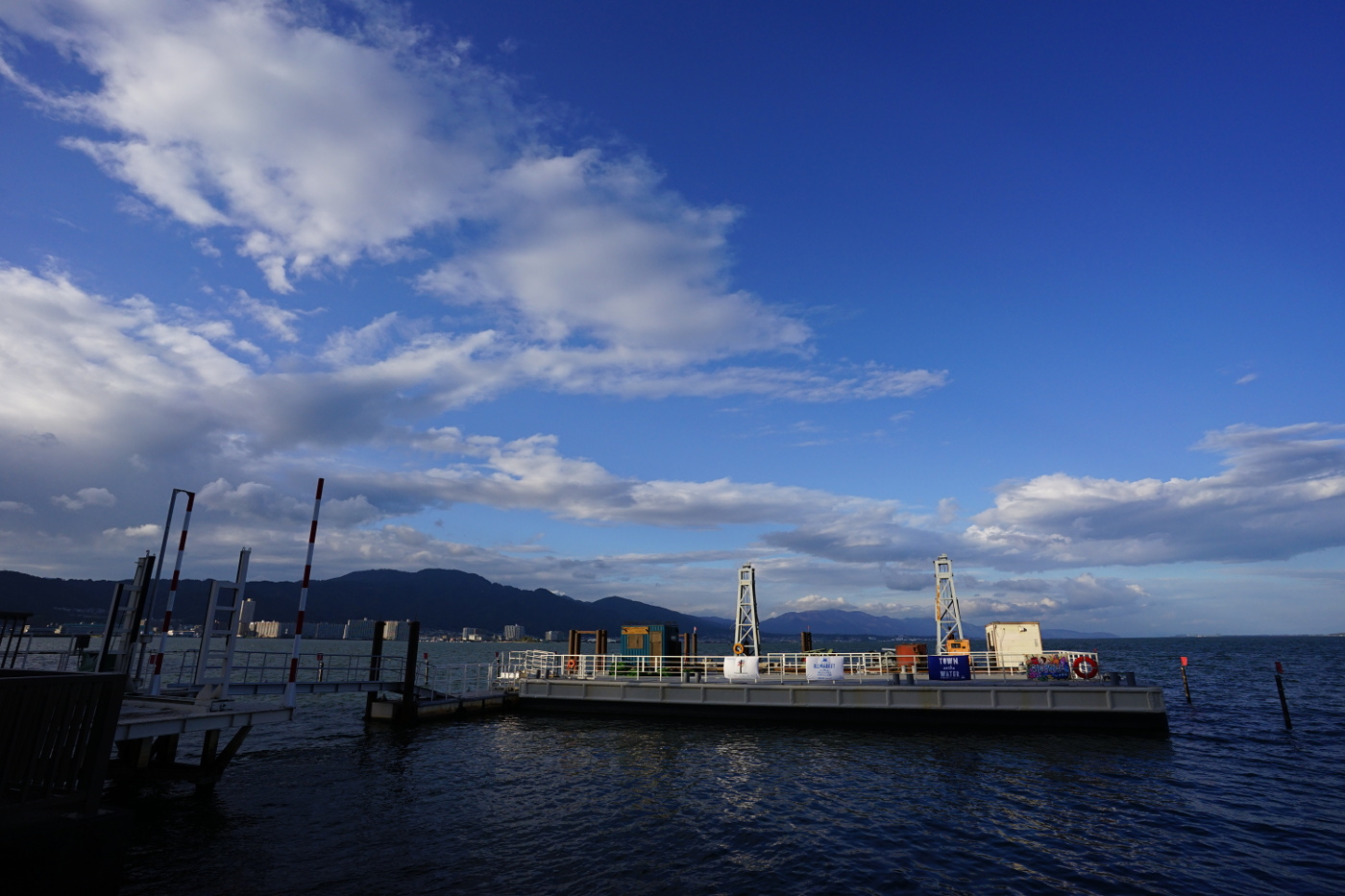 今年は秋を感じる間もなく冬が来た感じだ。朝から弱いながらも北西風が吹いて琵琶湖は冬型の様相だ。でも気温は平年並みで寒くはなかった。浜大津港近くの広場ではイベントの準備でテントが多く張られている、打出浜からにおの浜の湖岸でも木々の傍らにはライトが設置されたり、遊歩道の脇にはプランタが並べられ、少し道が狭く感じるが通行に問題ないようだ。湖岸の桟橋には大きな浮き桟橋?が横付けされ湖上マーケットが開催予定とポスターらしきモノが貼られていた。行政も関係している秋のイベントかと状況をデジカメに収めた。最近では、県内のコロナ感染者も少なくなり、ひと桁代が続いているが、コロナが終息した訳ではないのに、イベントを急いで演ることもないのではとおもいながら湖岸ポタリングで走った。僕が心配なのは琵琶湖の水位が低く何時も此の時期は台風らの影響で平常水位を保っていた筈と琵琶湖を眺めた。