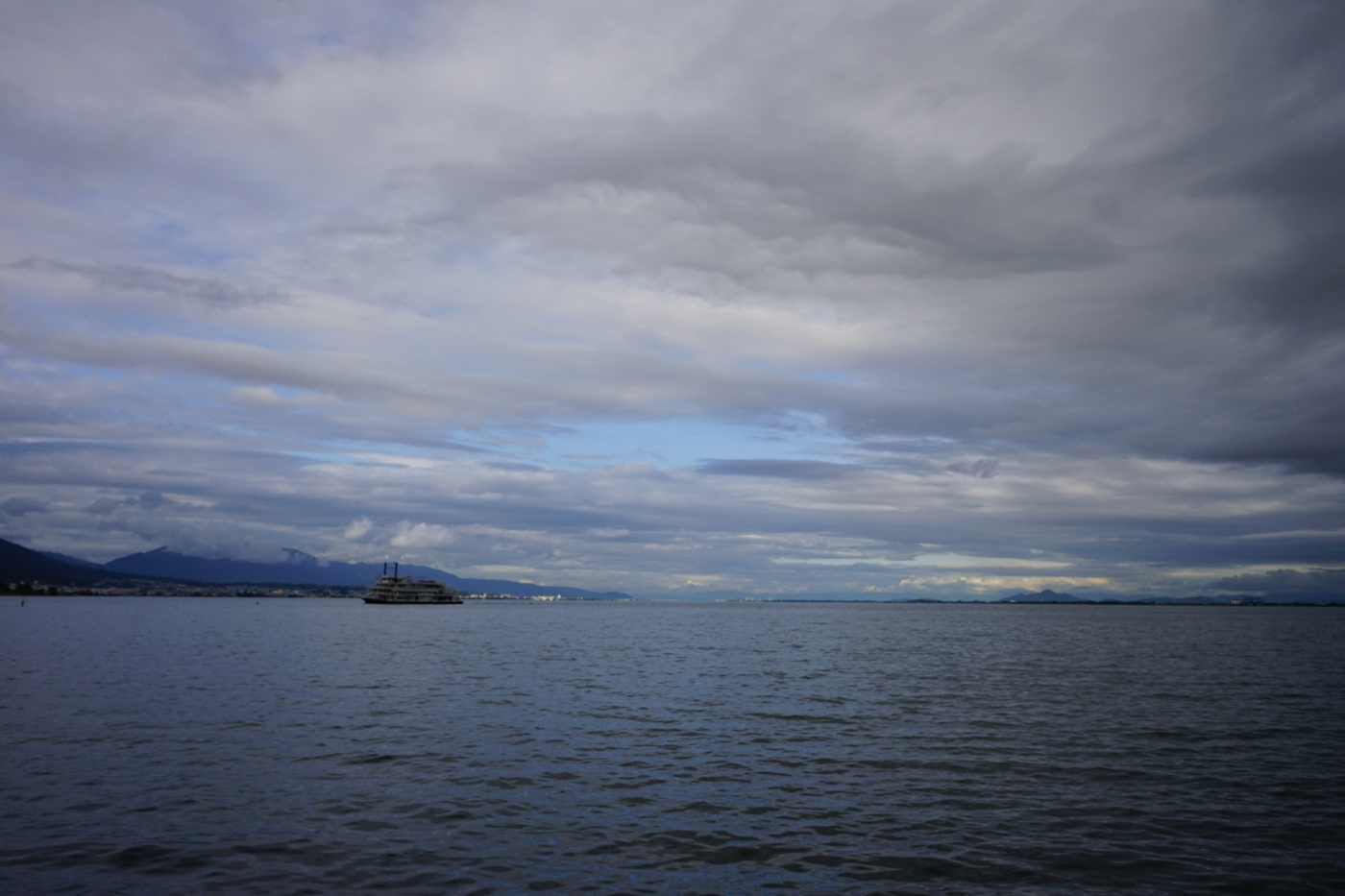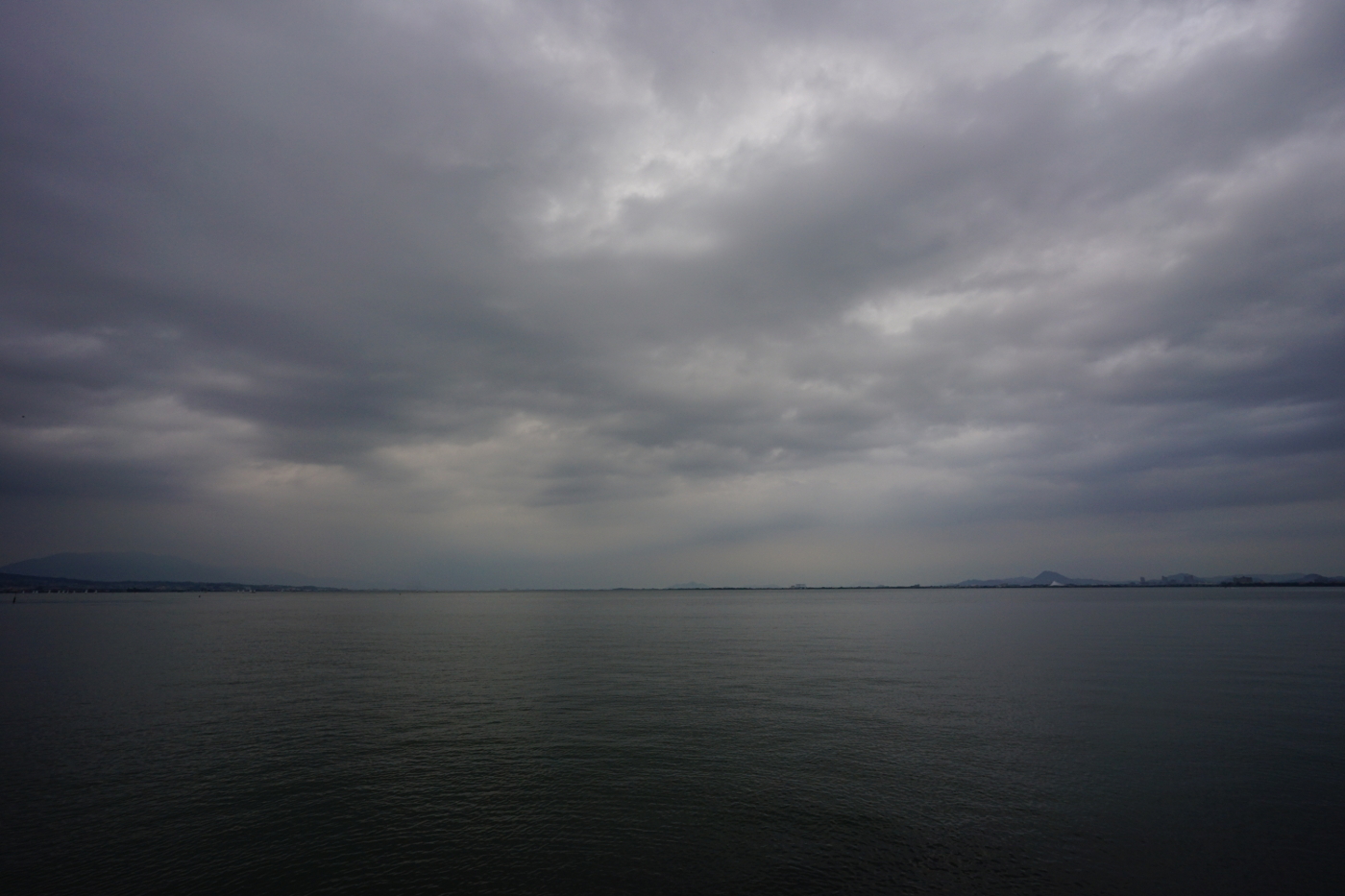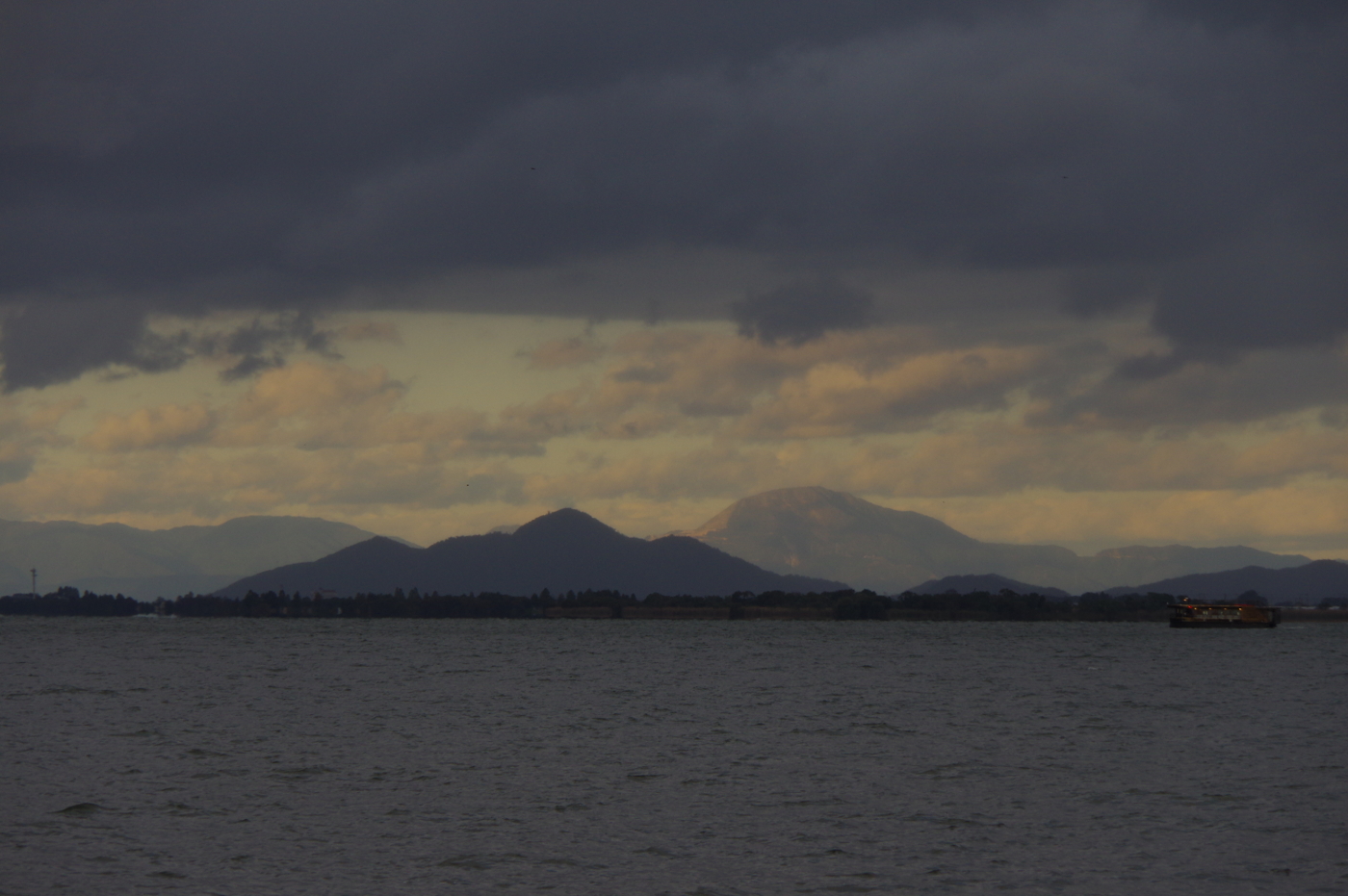 今日の琵琶湖の夕景は季節の変わり目を知らせているのか、暗く静だった。