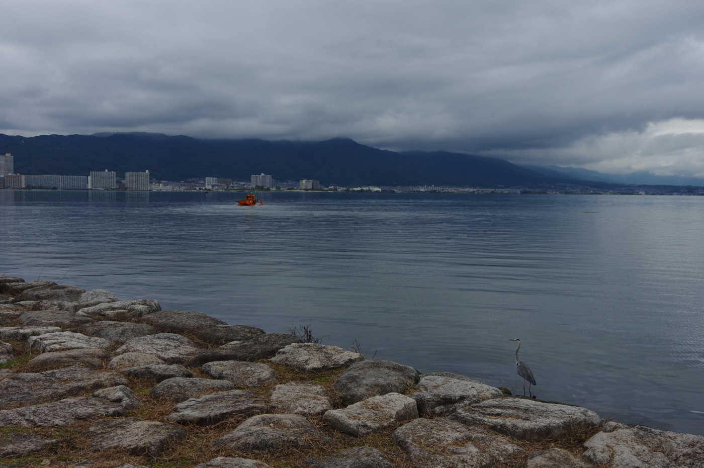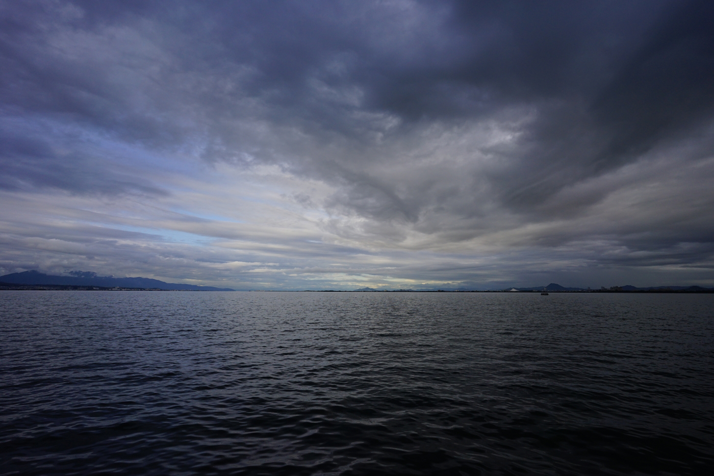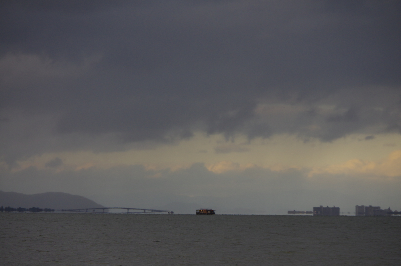 今日の琵琶湖の夕景は季節の変わり目を知らせているのか、暗く静だった。
