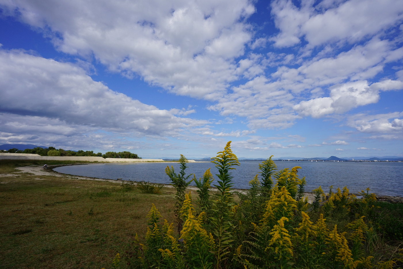 セイタカアワダチソウは以前に比べ身近な場所で見られなくなった。最初はアレルギーを起こすブタクサと間違えられて気の毒な花だった。セイタカアワダチソウは花粉を飛ばすことがなく、ミツバチらの虫たちによる受粉だから花粉を自ら飛散さすことはないが、ブタクサと同様に外来種だ。今日の午後、柳が崎へと自転車を走らせた。僕の行動半径は自力で走れる自転車か徒歩だから距離は知れたものだ。久しぶりに柳が崎にある市営のイングリッシュガーデンに入った。シルバー料金160円と安いが見どころは殆ど無いのが僕の感想だ。中へ入ると花たちが迎えてくれるが元気がない、花を愛する人達が管理をしていないのは一目瞭然だ。これなら自然のままに放置した方が花や植物たちは元気を取り戻すのではと思いながら写真を撮った。長居は無用とガーデンを出て柳が崎の浜辺へ向かった。先日、訪れた時にはセイタカアワダチソウは咲いていなかったが黄色の花が秋の陽を受け湖岸で存在感を示していた。管理されたガーデンなどで咲く花よりも凛とした佇まいだ。セイタカアワダチソウが勢力を謳歌していたのは僕が大津際川の飛行場で飛行機で飛んでいた頃には2メートル近く背丈もある黄色の花を咲かせたセイタカアワダチソウが至るところで咲いていた事を思い出した。でもブタクサだったのではと・・・でも僕はアレルギー体質なのでブタクサだったら大変なことになっていたのではと思い返すもアレルギー反応を起こした覚えはないから・・・とセイダカアワダチソウだったとおもった。