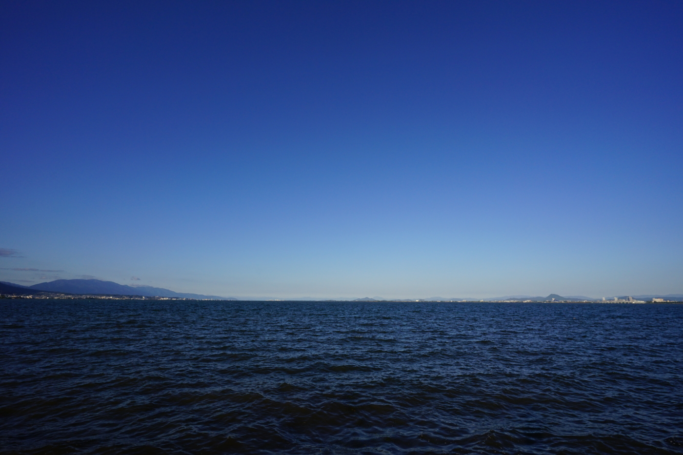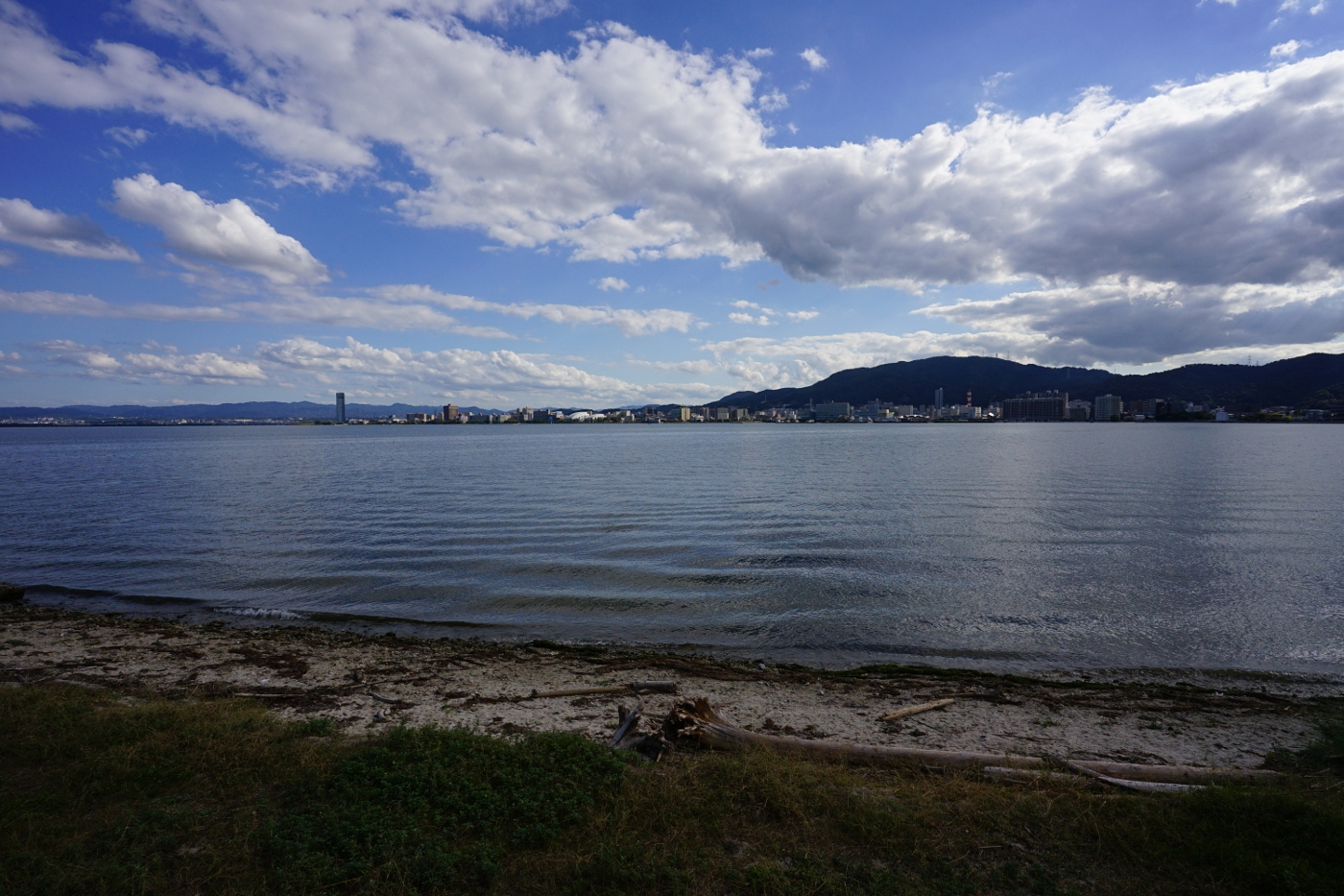 八十歳を超えると、食欲の秋は無くなったが読書は何時もしているから季節には関係ないと、午後、三井寺の茶房ながら亭に出かけた。別に態々、茶房に出かけて本を読まなくても良いのだが、集中して読むには家ではなく違う空間の方が集中しやすいからだ。買っておいて読まなかった本は少し難解と積んでおく事が多い、13年前に買った、「日本文化における時間と空間」(加藤周一著)を最近読み始めた。少年時代からSFが好きでタイムマシン等は時間の話だからと、題名に時間が付いていると読みたくなるが勉強嫌いだった僕には荷が重すぎると、分からないながらも読み進んでいて、中には、はっとするページもあり知らないことの多さを実感しているのが現状だ。第三章の中では、福沢諭吉が語った、大勢順応主義は今も変わっていない事を記していた。そして1940年戦争に走る軍部に中国政策を批判して衆議院から除名された斎藤隆夫の名前を知った。大勢に流されない人達の名前の殆どは歴史の時間から消されたしまうのかと思うと、空しさを感じるばかりだ。もう直ぐ衆議院選挙が行われるが大勢から外れ正論を語る人にと思うが、候補者がいるのかと考えた。時間の話は面白いから読みつけられると思いながら本を閉じた。そして湖岸へ向かうと琵琶湖は冬の様相を表していた。今年も秋は短く、冬がもう其処に来ているのではと、今の瞬間を切り取るのが写真だと思いながらシャッターを押した。
