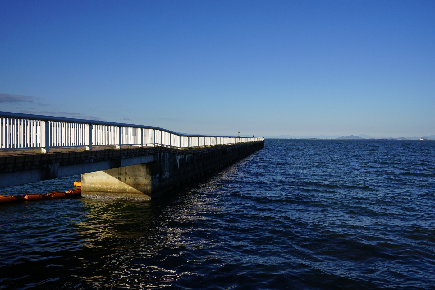 雲一つ無い青空を見上げると、無性に飛びたくなるが、翼が無いのが残念だと悔しくなるも進化の過程でホモ・サピエンスは飛ぶことへ、シフト出来なかったのかと、鳥たちが羨ましくなった。今日のような好天は一年間に数日しかない航空写真日和だ。余程チャンスに恵まれないと高度三千メートルから琵琶湖全景を写真に撮ることが出来ないと思いながら石坂線に乗って坂本のKクリニックへ向かった。7週間に一度受ける検診の為だ。今日もK先生から異常なしですよと言われ気分は爽快だ。昼食は鶴喜蕎麦が今日は休日で何時もの喫茶店珈琲人で済ませた。帰路の車内は殆どの人がスマホを見ているが僕は車窓風景が好きなので大津比叡山麓の田園風景を楽しんだ。コロナ感染者も少ない日が続いて道行く人の顔にもゆとりを感じた、マスクで口元は見えないが目の輝きが戻ってきたからだ。今年も秋は短いとの予報がでているが間もなく紅葉シーズンになるが、コロナの第六波が心配だ。帰宅後、自転車で湖岸へ向かった。打出浜から見る琵琶湖は雲一つ無く、湖面も青、空も青、の安定した日常の風景を眺めていても、彼方の若狭原発群が気になってくる、高浜と美浜の老朽化した原発の再稼働は絶対にさせてはならないと思いながら青空を眺めた。