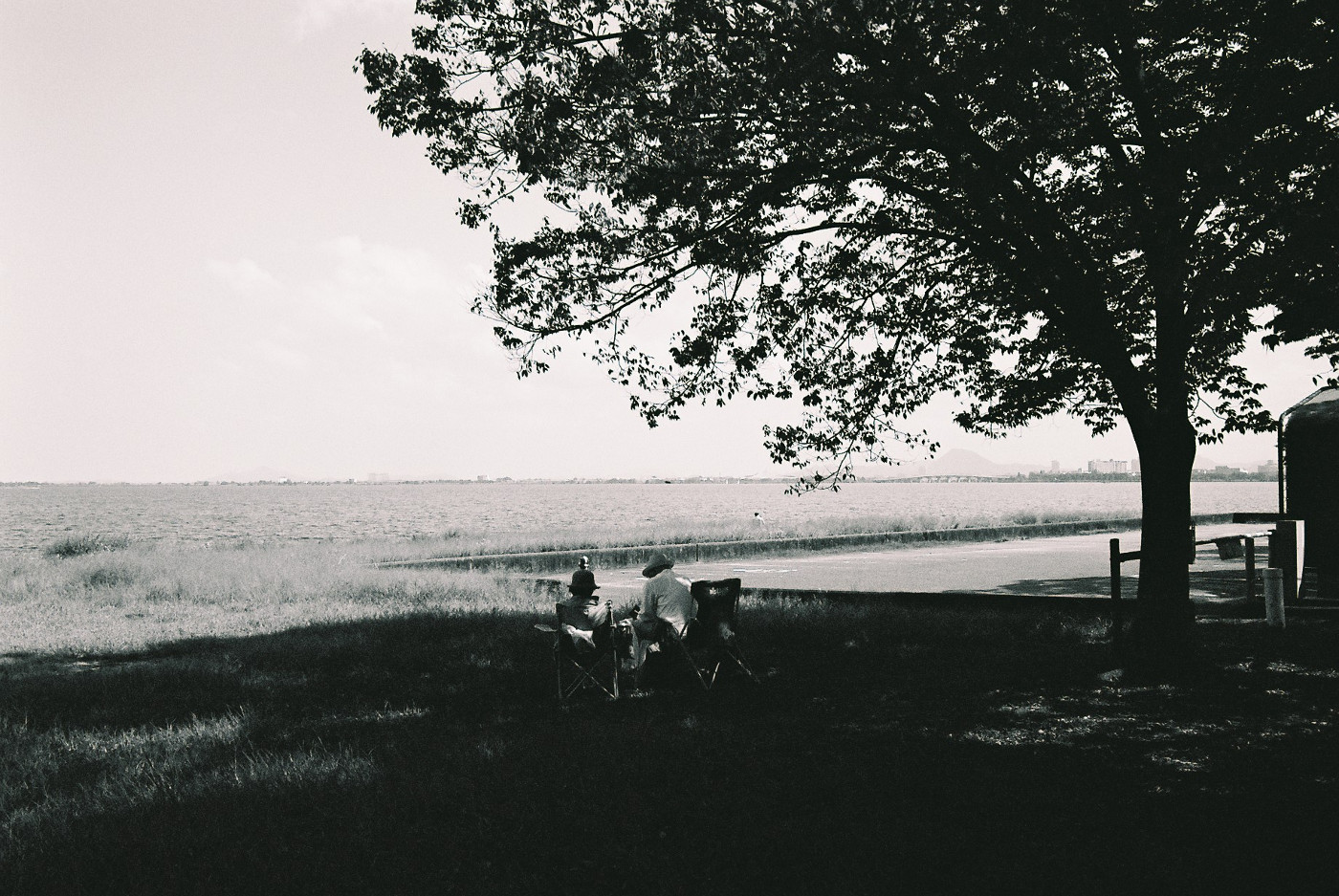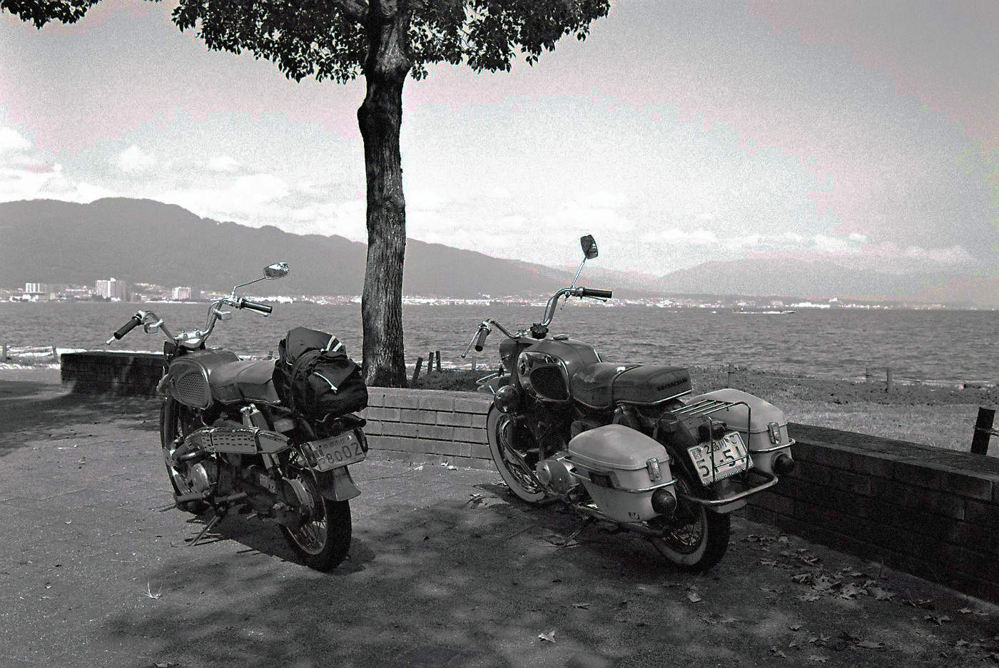 昨日の湖岸ポタリングでは、におの浜湖岸にオートバイが止まっているのを見かけ通り過ぎたが、気になってオートバイの所まで引き返した。月光仮面の歌の中でもオートバイなる言葉が出てくる、最近はバイクもしくは二輪の時代に何故、僕がオートバイと言ったのは1960年代のホンダのドリームとベンリーを見たからだ。ツーリング途中で湖岸に寄った、グループに声を掛けて写真を撮らせてもらった。ライダーは僕よりも遥かに若い世代の人がドリームやベンリーに乗っている、クラシックバイクの趣味仲間らしい、一人は東京から走らせてきたと言っていた。人物も撮りたかったがオートバイだけにした。オートバイだけを写真に撮ると湖岸で開かれた琵琶湖大博覧会(1968年)当時にタイムスリップしたのではと思いながらライカM6のシャッターを切った。やはりフイルムで撮る写真は違うなとおもった。露出、シャッター、距離そしてフイルム巻き上げも手動だ。パシャッと切れるシャッター音、ギアが回りフイルムを巻き上げるアナログ的な音は心地よく聞こえた。デジタル時代の中でもアナログのフイルムカメラを扱える幸せな最後の世代ではと首に掛けたライカを見た。