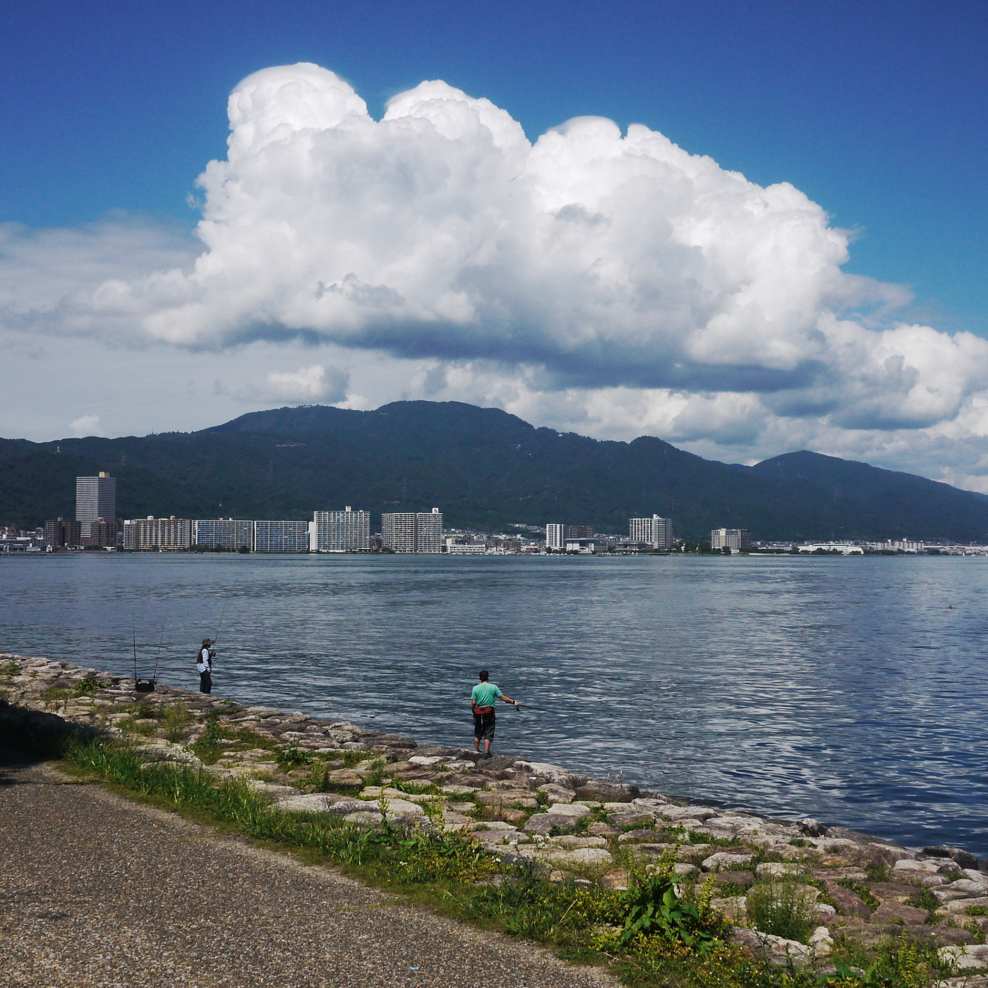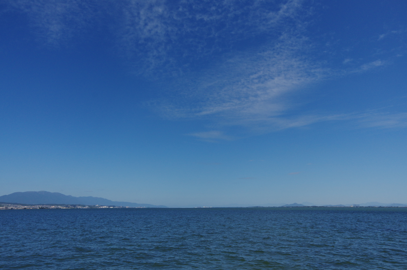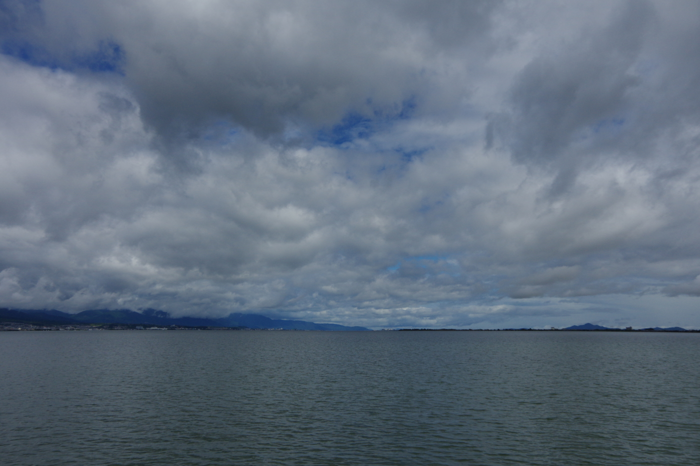 台風14号は湖国には大した被害も無く無事通過して行った。雨と風を心配したが何事もなかったと感謝した。湖岸ポタリングでは、まだ台風の影響で雲が低く垂れ込めいてる、比叡比良の上部は雲に覆われていている、水気を含んだ空気が生暖かく感じるのは台風が運んできたのかと、湖岸に佇んで写真を撮った。雲を愛でると気分が安らいで来るから不思議だ。今日の雲は積雲らの下層雲で、僕の乗っていた単発の小さな飛行機パイパースーパーキャブなら雲と戯れることが出来るのにと羨ましく空を見上げた。雲の隙間から見える青空は秋を感じさせてくれた。暑さ寒さは彼岸までと、此の時期がくると話していた祖母を何故か思い出した。そしてお彼岸にはお墓参り行かねばと空を見上げた。夕刻近く、雲と青空に誘われて又湖岸へ向った。空の青さは一段と秋を想わせてくれた。湖上の彼方の雲の間からは薄明光線が見られた。まだ台風シーズンは終わっていないが、どうか大きな台風が来ないことを祈りながら湖岸を後にした。
