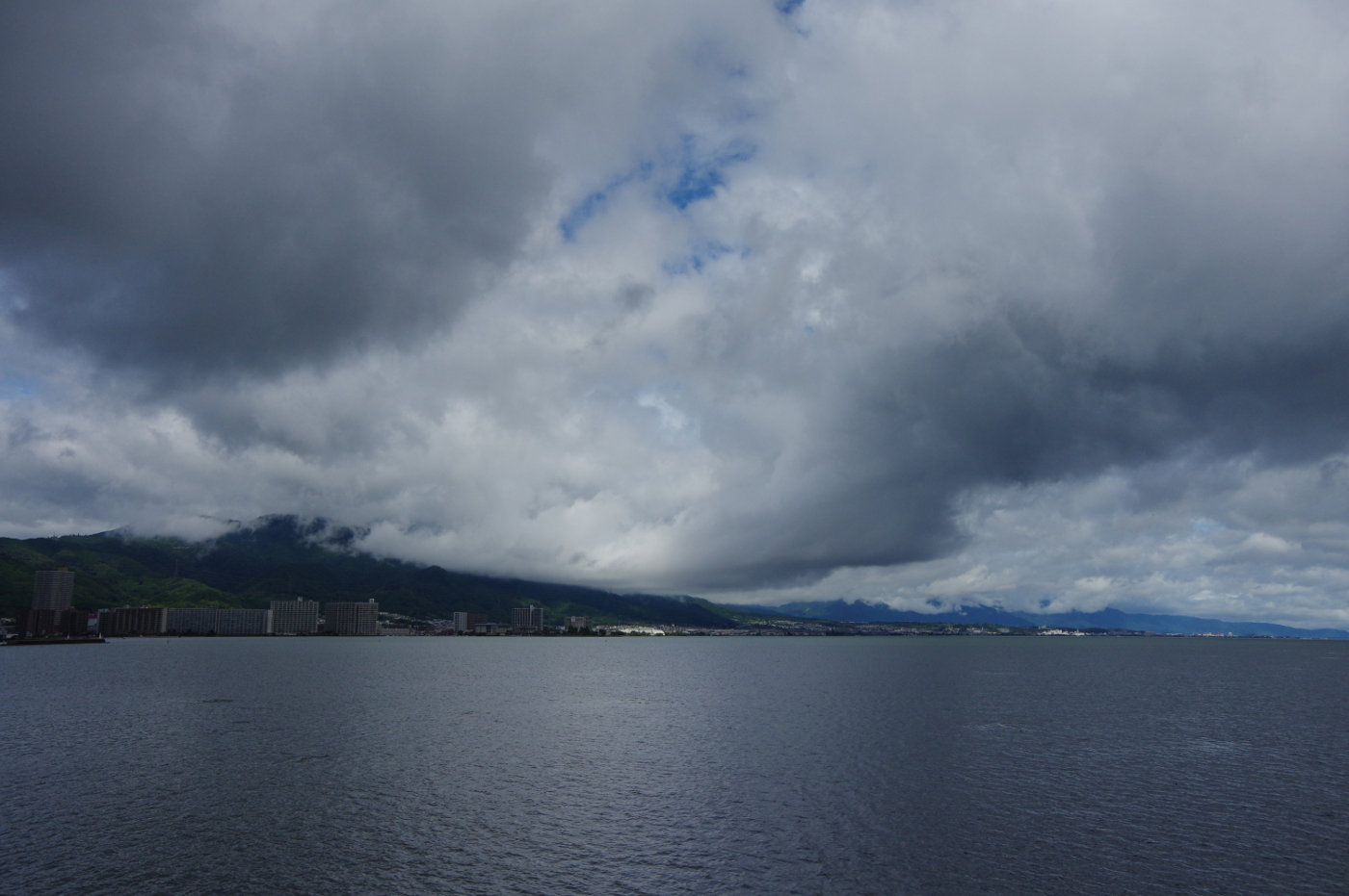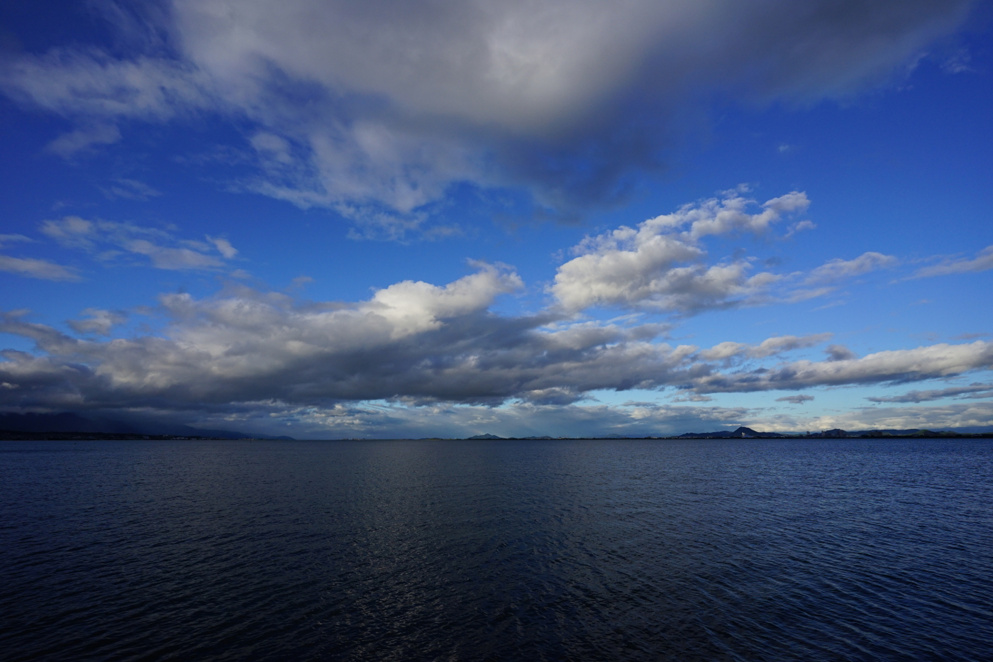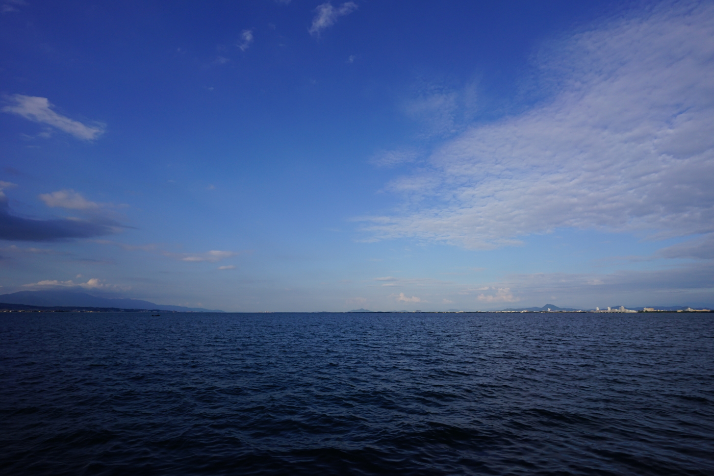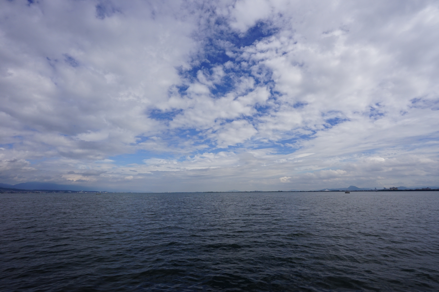 台風14号は湖国には大した被害も無く無事通過して行った。雨と風を心配したが何事もなかったと感謝した。湖岸ポタリングでは、まだ台風の影響で雲が低く垂れ込めいてる、比叡比良の上部は雲に覆われていている、水気を含んだ空気が生暖かく感じるのは台風が運んできたのかと、湖岸に佇んで写真を撮った。雲を愛でると気分が安らいで来るから不思議だ。今日の雲は積雲らの下層雲で、僕の乗っていた単発の小さな飛行機パイパースーパーキャブなら雲と戯れることが出来るのにと羨ましく空を見上げた。雲の隙間から見える青空は秋を感じさせてくれた。暑さ寒さは彼岸までと、此の時期がくると話していた祖母を何故か思い出した。そしてお彼岸にはお墓参り行かねばと空を見上げた。夕刻近く、雲と青空に誘われて又湖岸へ向った。空の青さは一段と秋を想わせてくれた。湖上の彼方の雲の間からは薄明光線が見られた。まだ台風シーズンは終わっていないが、どうか大きな台風が来ないことを祈りながら湖岸を後にした。