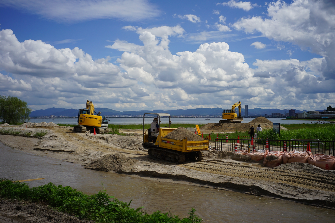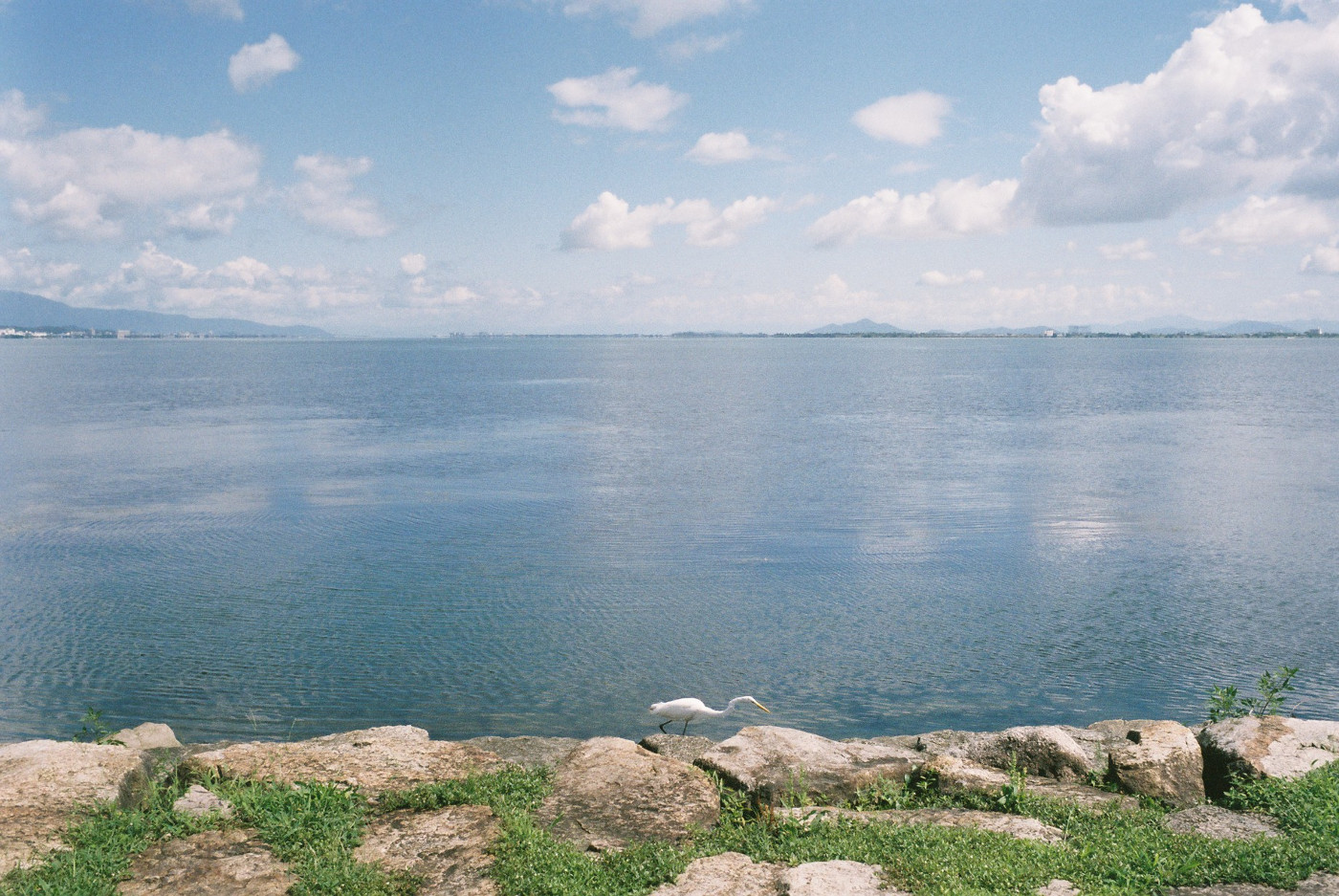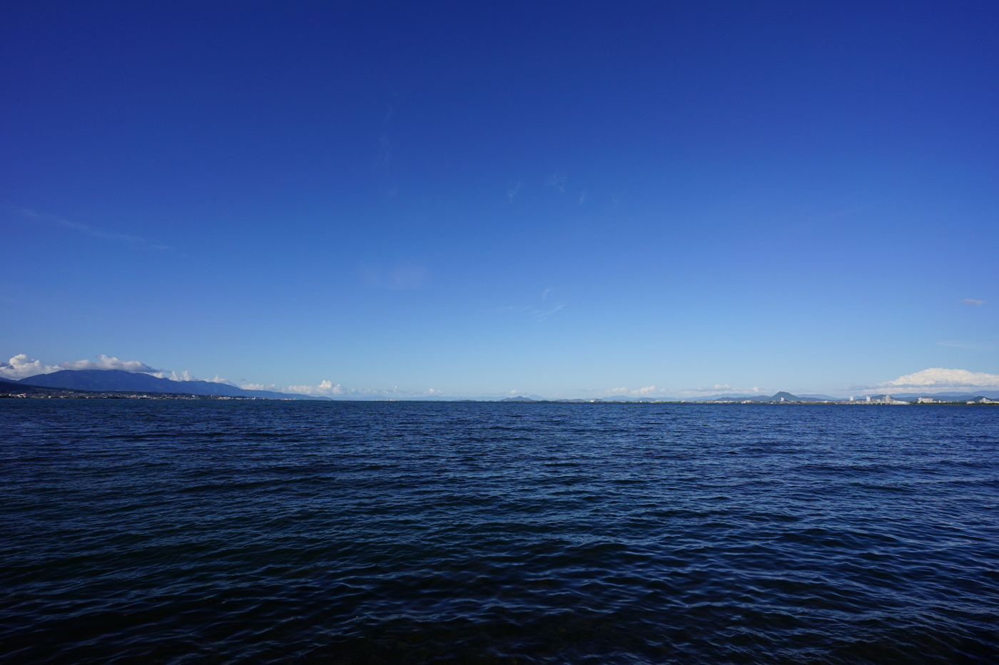 写真は今日の琵琶湖の夕方は雲一つ無い風景が広がった。二枚目三枚目写真はフイルム写真です。