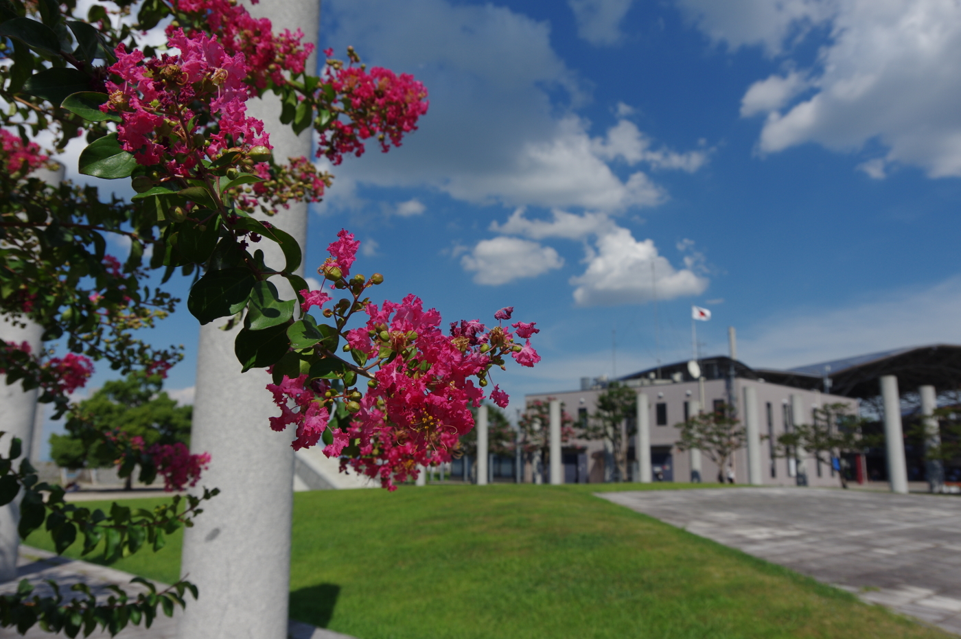 琵琶湖にマンボウが・・・正確には滋賀県にまん延防止措置が8月8日から実行されるとニュースが知らせていた。非常事態宣言もまん延防止措置もコロナに対して効果があるのか疑問に思うのは僕だけではないと思った。東京の感染者も今日五千人を超えた、医療の専門家が間もなく一万人を超えるだろうと言っていた。全国で一日に三万人を超えるコロナ感染者が出る日も近く、国際的標準に仲間入りだと喜ぶ訳には行かないと、外国では医療体制の不備などのニュースは最近聞いたことがない、我が国の医療体制は崩壊しているから中等症の患者は自宅療養になったのではと考えた。自分の命は自分で守る・・・そんな事が出来るわけ無いと、なるようにしかならないと、気分転換に湖岸へ向かう事にした。浜大津湖岸から空を見ると雲がメッセージを・・・花と僕は読めた。漢字の花は素晴らしい雲字で書かれている、これなら誰でも読めるとデジカメで撮った。そして花と言えば、夏は百日紅と浜大津一本木コロッセオ公園へ向った。