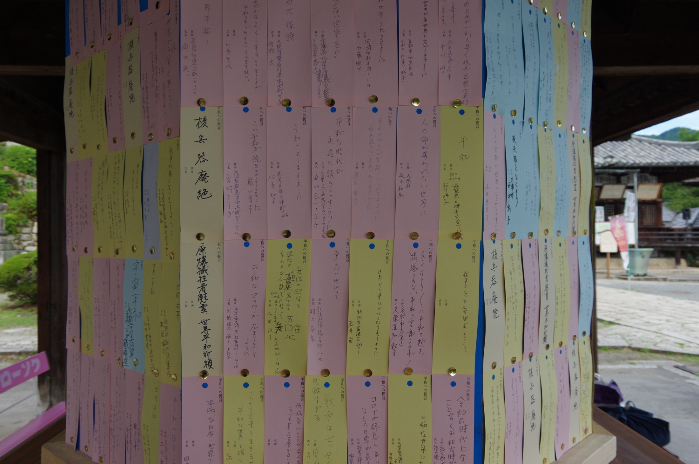 広島への原爆投下から76年となる、今日広島の平和記念公園で平和記念式典が行われる同日に大津の三井寺で毎年、原爆犠牲者の法要が執り行われている、僕も毎年参加しているが去年と今年はコロナの影響もあり平和の願いが書かれた短冊を風船に付けて大空へ飛ばす行事は中止され、其の代わりに平和の願いを紙に書いて掲示塔に貼り付けるように変更された。ラジオから流れてくる放送を聞いて三井寺でも8時15分同時に犠牲者の冥福を祈るために黙祷を一分間捧げた後に観音堂の内陣で三井寺の僧侶が唱える声明が厳かに流れる中で法要が営まれた。そして参列者の焼香が終わると、三井寺の長吏福家俊彦氏のスピーチの中では原民喜の生涯を少し話されて、広島の原爆の恐ろしさは語り継ぐ大切さを語られた。参加者の中に若い人を見かけなかったのは少し残念と思いながら三井寺を後にした。広島、長崎の原爆そして福島原発の事故のことも永遠に語り継がねばならないと思った。そして初めての国際条約「核兵器禁止条約」に参加しない此の国の政権には不信が募るばかりだ。