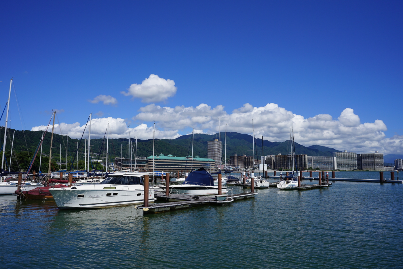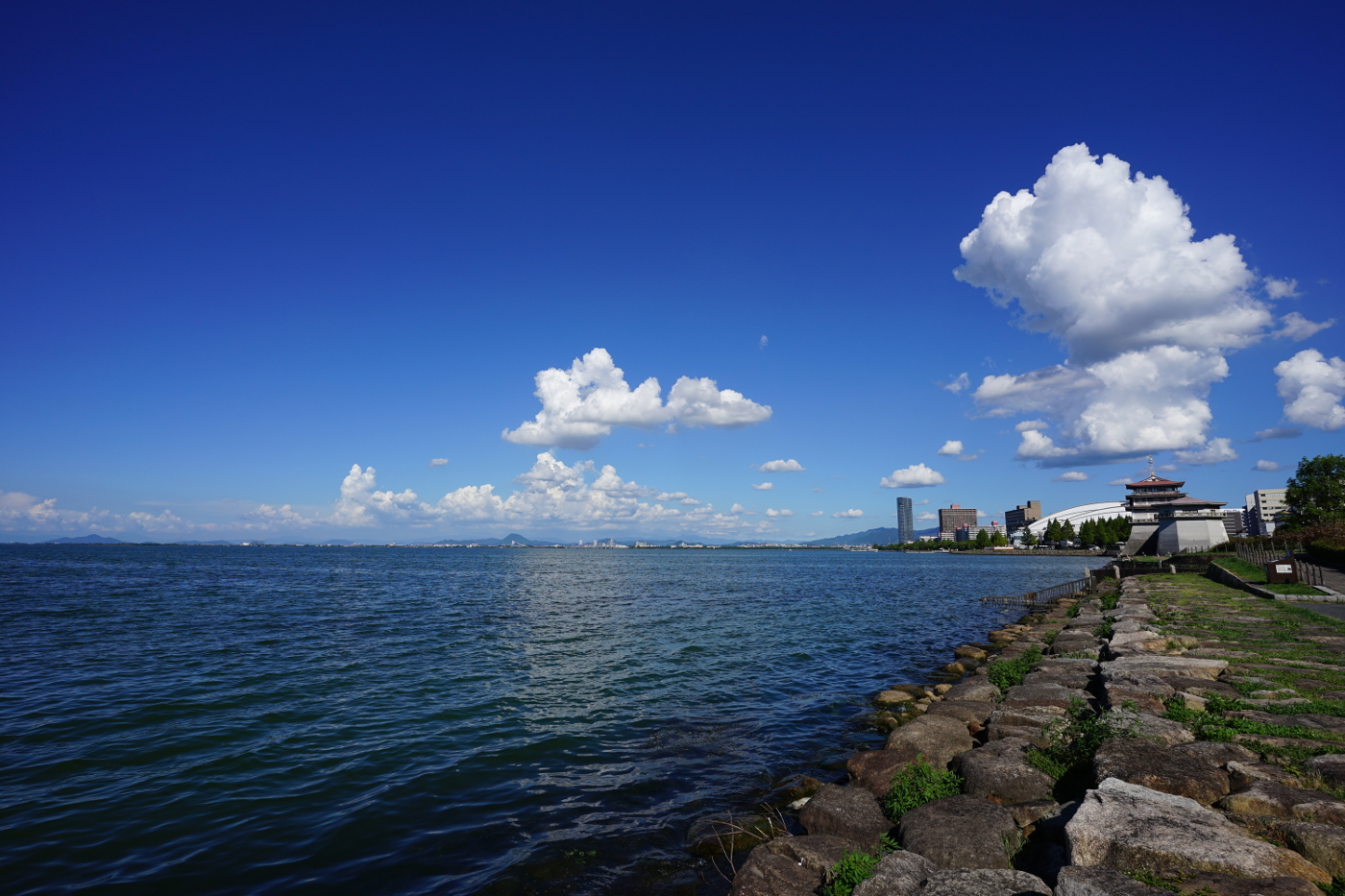 オリンピックは粛々と国の思い通りに進んでいる中で、コロナ対策では本音が出てきたのではとおもった。重症者を守るために中程度以下のコロナ患者は自宅療養になるとニュースが伝えていた。国民の命を守る事など最初から無かったのだと、首相の口からでる安心,安全の言葉はジョージ・オーウェルの小説「一九八四年」の中に出てくるビッグ・ブラザの標語の様だ。戦争は平和なり 自由は隷属なり 無知は力なり をもじれば不安は安心なり 危険は安全なり と言っているように思えてきた。今日もコロナ感染者は過去最高を記録するところが増えてきた。医療関係者らが自宅療養の危険を訴えているが政府は聞く耳を持たないようだ。僕の住む滋賀県でも一日の感染者が百人を超えた。集団免疫が出来るまでには時間が掛かりそうだ。ワクチンの効力が何時まで持つのか、変異ウイルスはまだこれからも増え続けるのかと心配な状況がまだ続きそうだ。台風が二個も此方へ向っているそうだ、不安ばかりでネガティブにはなれないと空を見上げると積雲が大活躍している姿を見て少しポジティブな気持ちが湧いてきた、なるようにしかならないと自転車を走らせ琵琶湖へ向った。